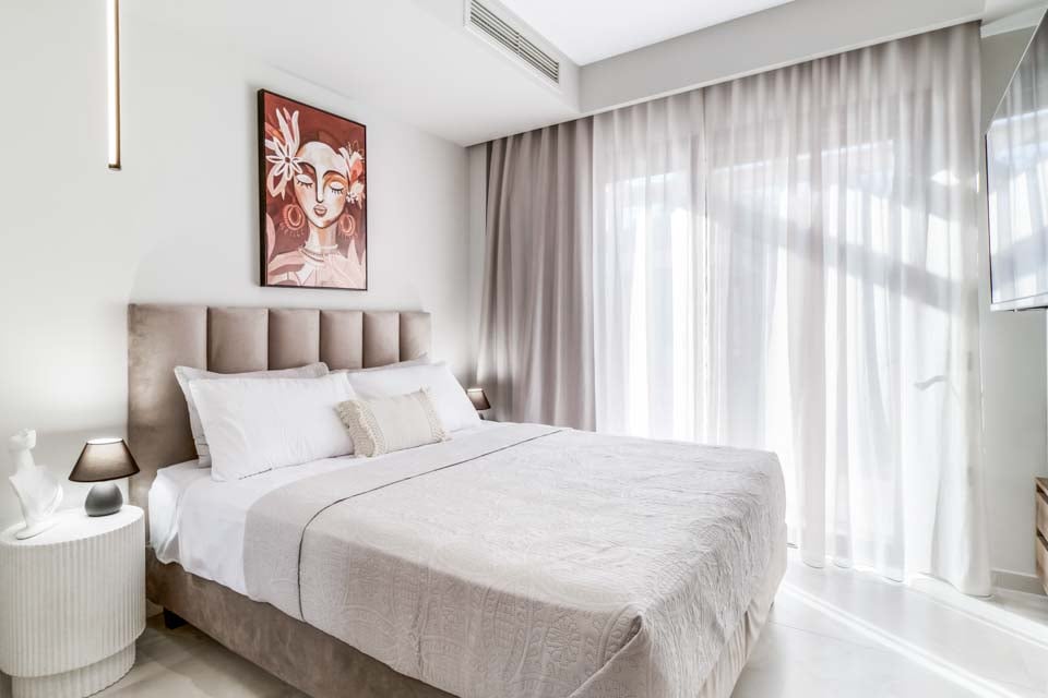 Forfriskende moderne innvendig, gå inn og forbered deg på å bli imponert. Nyt det fullt utstyrte kjøkkenet som oser av moderne livsstil, server en drømmeaktig brunsj ved frokostbaren før du setter deg ned i den myke sofaen for morgentanker. Når det endelig er på tide å starte dagen, vil du sette pris på de marmorerte veggene og de nye armaturene på badet, ideelt for en velfortjent velværestund. Eller kanskje du velger å nyte noen flere drømmende timer med søvn, pakket inn i de myke lakenene på soverommet ditt.