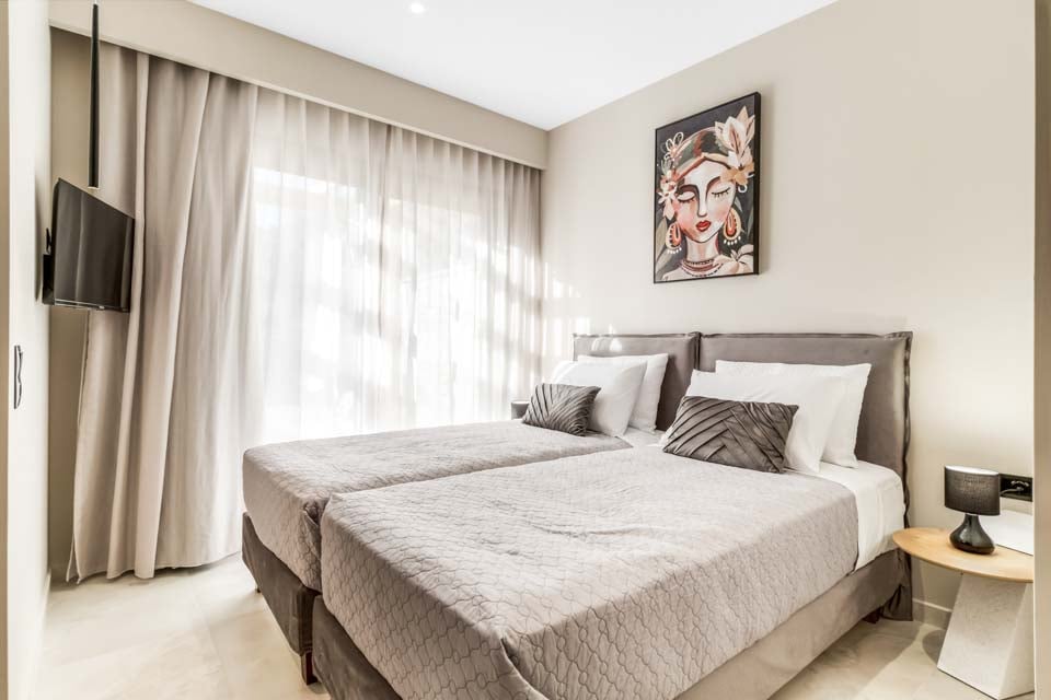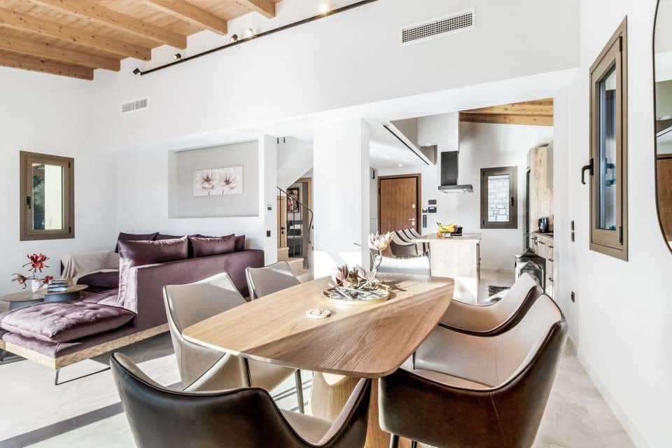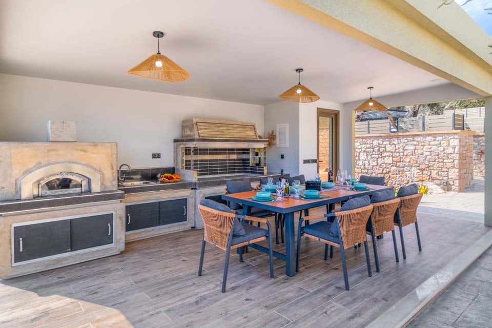 Når det private bassengområdet ditt ser så bra ut, vil du aldri ha lyst til å forlate den solfylte solsengen din. Nyt solens varme mens du nyter den sensasjonelle utsikten som omgir dette lille stykket paradis, før det asurblå vannet roper på deg for en forfriskende dukkert. Få full utnyttelse av evighetsbassenget ditt, enten det er med utsikt mot den vidstrakte havet eller om du har det gøy i solen, ett plask om gangen. Det er helt opp til deg å nyte det! Hvis du befinner deg fanget i kryssilden av bassengvannsplask, kan du raskt trekke deg tilbake til balkongen for et ideelt sted for litt alenetid med bare deg selv, favorittdrinken din og en fengslende bok som selskap. Hvis du liker å spise utendørs, finnes det mange innbydende steder å nyte greske godsaker. Len deg tilbake på solstolene ved bassengkanten for morgenkaker, nipp til soloppgangskaffen din under den overbygde terrassen eller tilbring lange kvelder med å grille et festmåltid, mens du nyter hver bit av grillmaten. Mmm ... det hørtes deilig ut.