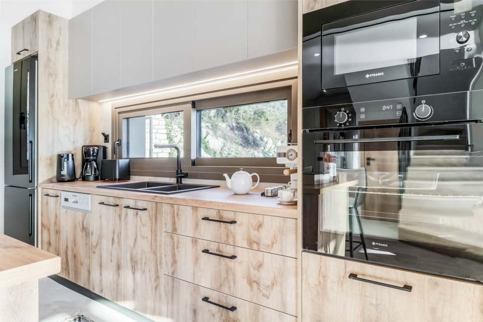 Stekeovn, Koketopp, Mikrobølgeovn, Kjøleskap med fryser, Oppvaskmaskin, Åpen planløsning