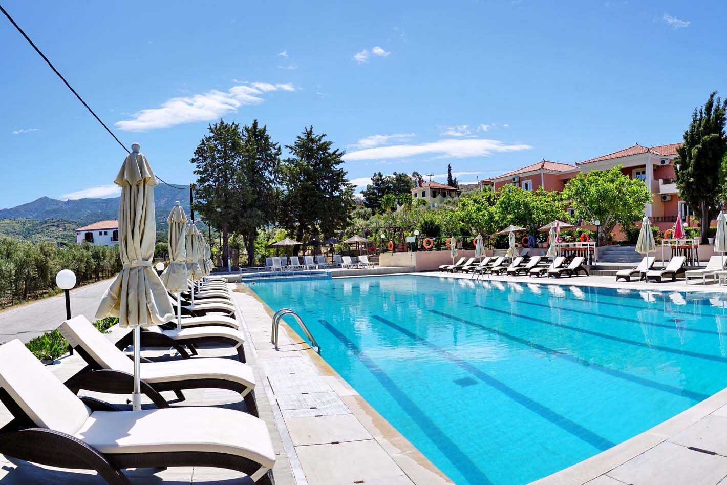 Bassengområde med et basseng som har barneseksjon. Solsenger og parasoller kan lånes på stranden. Buss til stranden fire ganger per dagen.