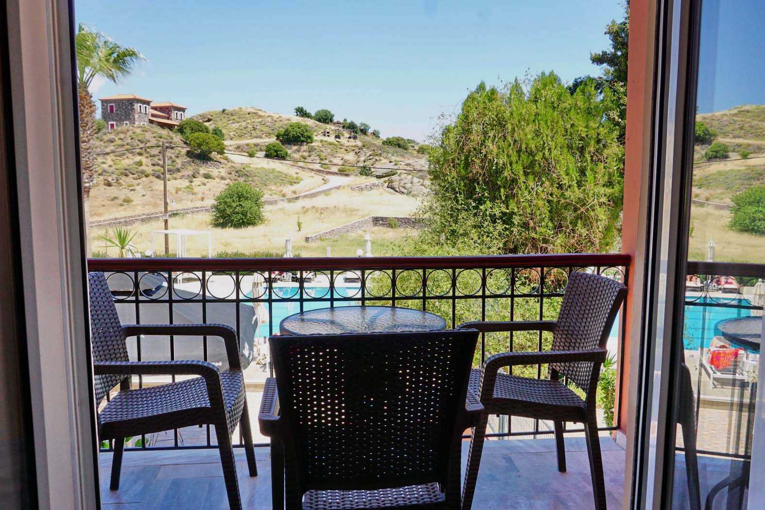 Bodde ei uke her til gunstig pris grunnet frivillig-arbeid. Meget slitent. Ville ikke vært fornøyd med 'normal' hotellpris. AC fungerte bra, wifi var best på utsiden og håndkleskift kun én gang i uka. 35 min å gå til sentrum av Molyvos.