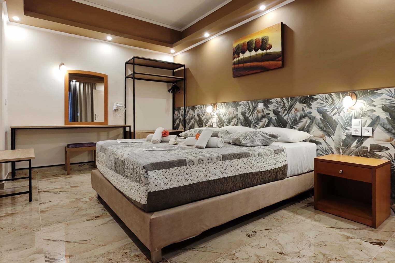 Toromsleilighet med balkong eller terrasse. Et soverom og en stue med minikjøkken. En dobbeltseng eller to enkeltsenger. Minikjøkken med kokeplater, kjøleskap og enkelt kjøkkenutstyr. Wifi, safe og luftkondisjonering inkludert. TV. Hårføner. Dusj og wc. Rengjøring 6 ggr/uke.