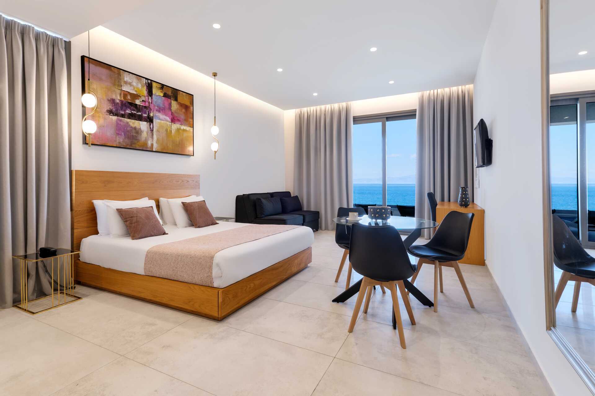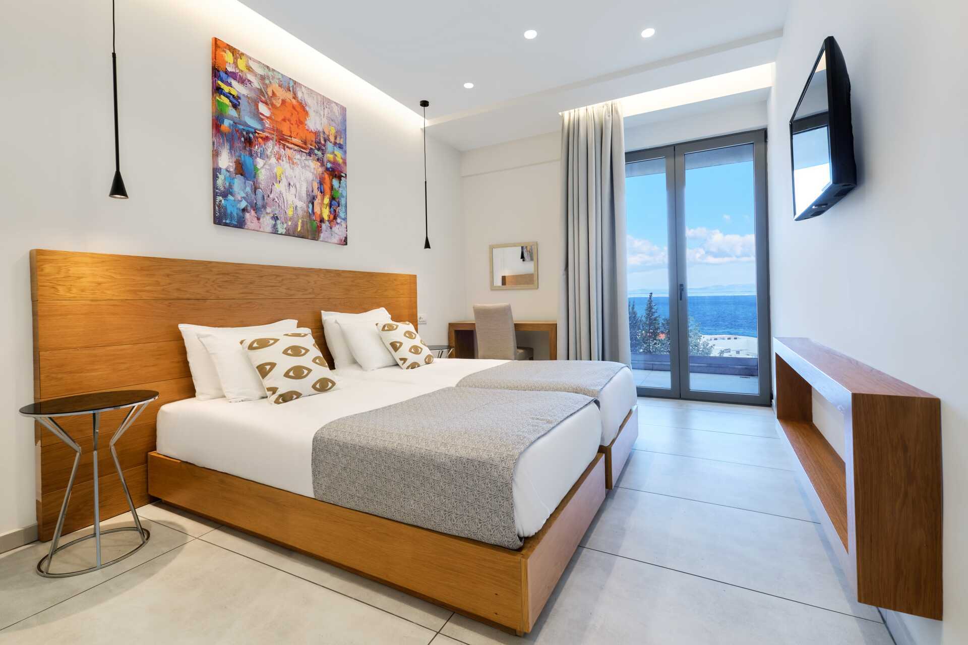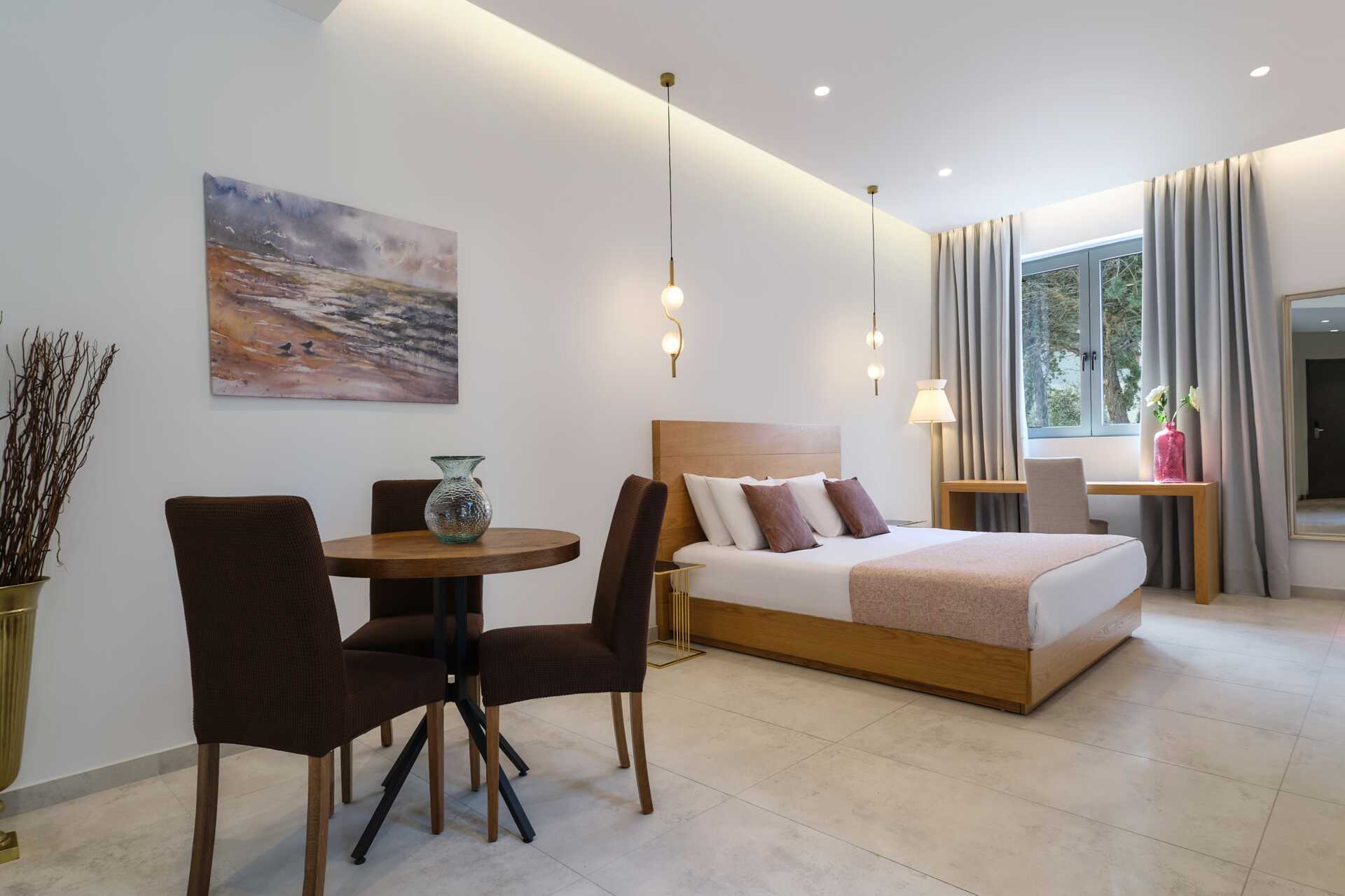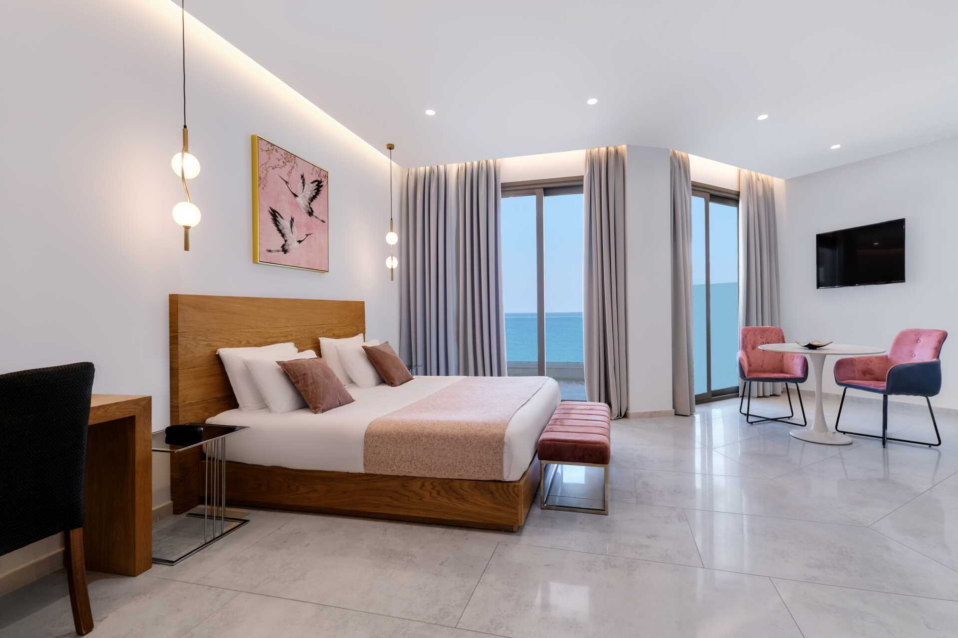 Superiorrom med balkong eller terrasse. En dobbeltseng. Wifi, luftkondisjonering og safe inkludert. Minibar. TV. Badekåper og tøfler Hårføner. Dusj og wc. Rengjøring 7 ggr/uke.