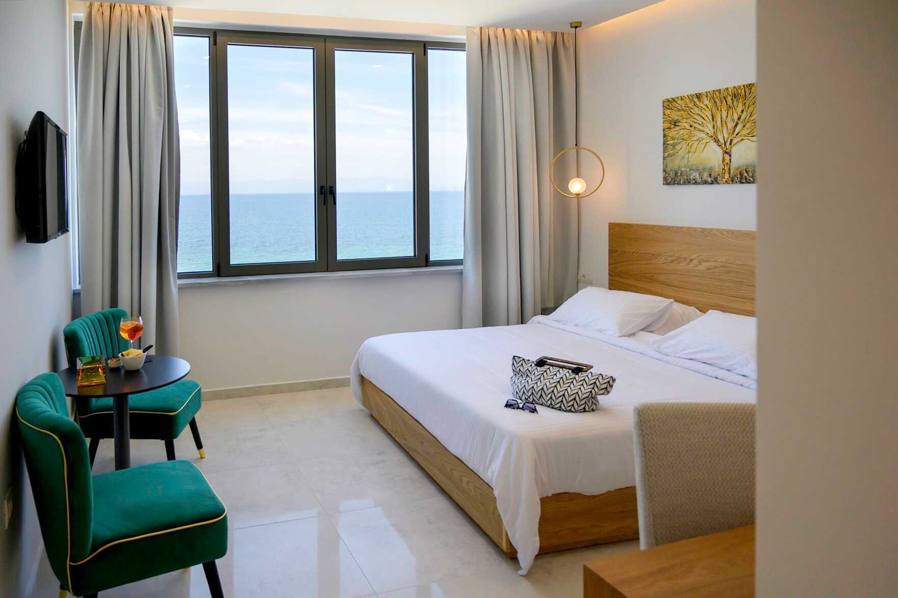 Superiorrom med balkong. En dobbeltseng. Wifi, luftkondisjonering og safe inkludert. Minibar. TV. Badekåper og tøfler Hårføner. Dusj og wc. Rengjøring 7 ggr/uke.