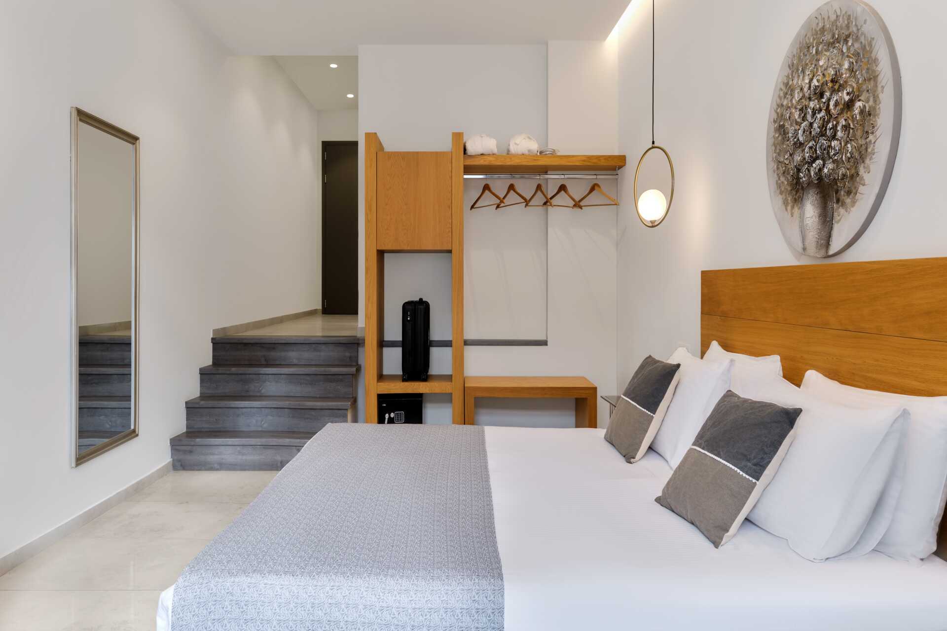 Deluxesuite med balkong. En dobbeltseng. Mulig med ekstraseng i oppredbar lenestol. Wifi, luftkondisjonering og safe inkludert. Minibar. TV. Badekåper og tøfler Hårføner. Dusj og wc. Rengjøring 7 ggr/uke.