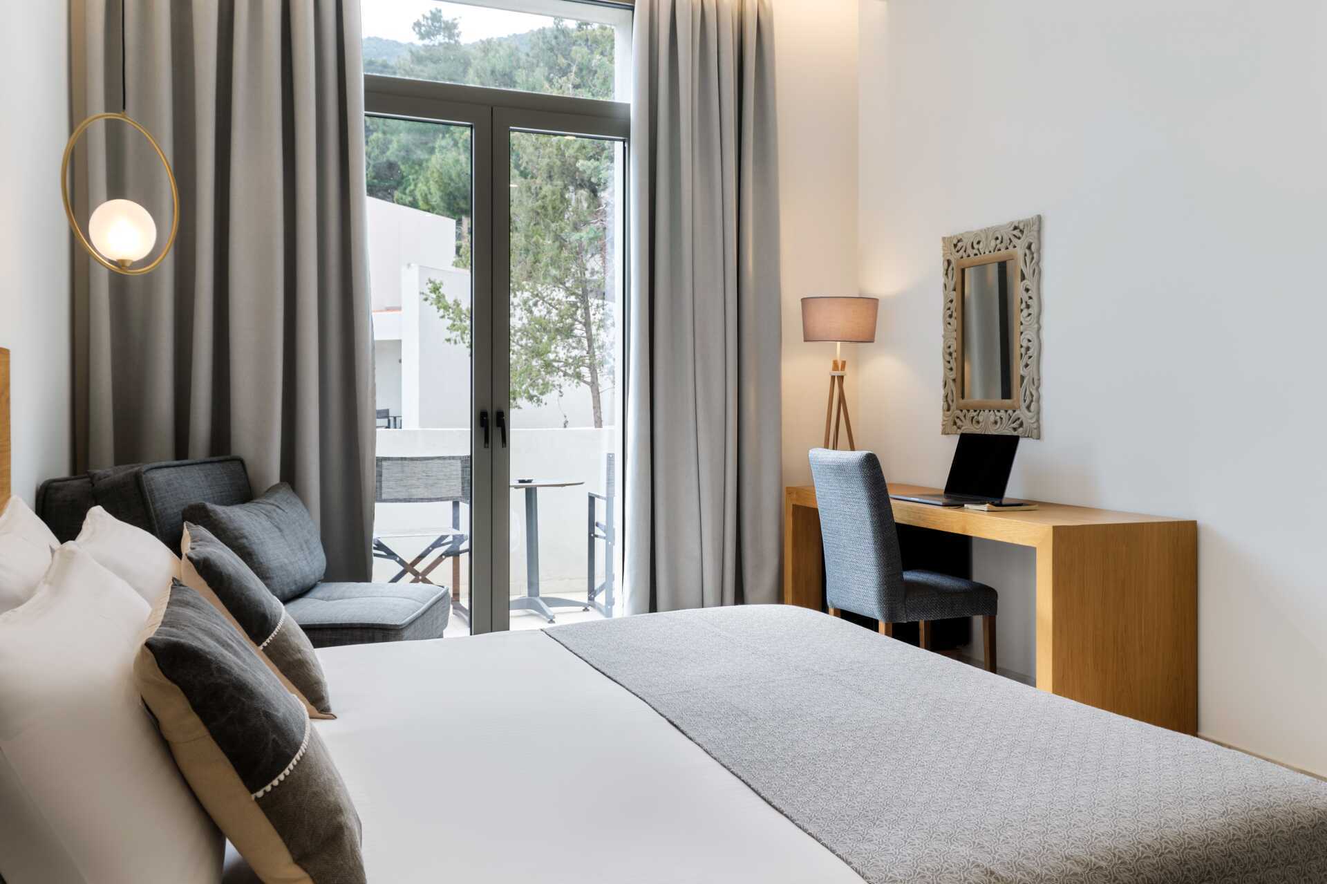 Dobbeltrom med balkong. En dobbeltseng. Wifi, luftkondisjonering og safe inkludert. Minibar. TV. Badekåper og tøfler Hårføner. Dusj og wc. Rengjøring 7 ggr/uke.