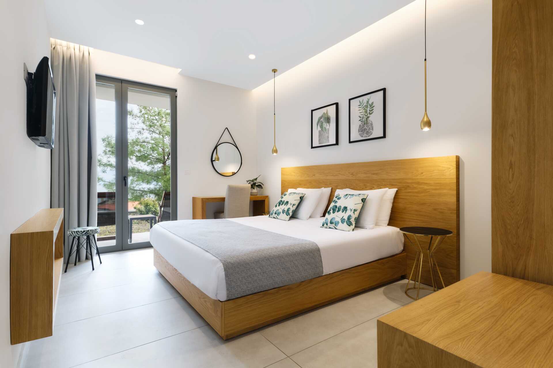 Dobbeltrom med balkong eller terrasse. En dobbeltseng. Wifi, luftkondisjonering og safe inkludert. Minibar. TV. Badekåper og tøfler Hårføner. Dusj og wc. Rengjøring 7 ggr/uke.