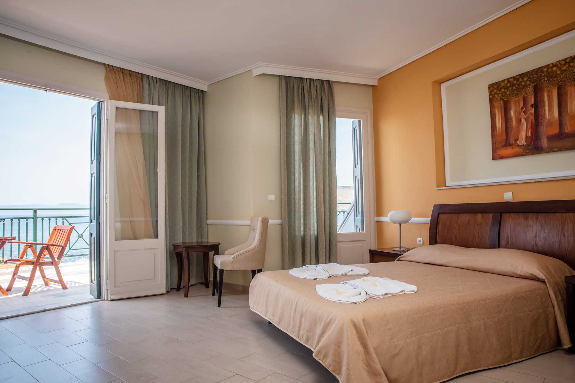 Superiorrom med balkong eller terrasse med havutsikt. En dobbeltseng eller to enkeltsenger. Luftkondisjonering inkludert. Safe mot avgift. Kjøleskap. TV. Hårføner. Dusj og wc. Rengjøring 7 ggr/uke. Barn under 2 år regnes inn i maksantallet i rommet.