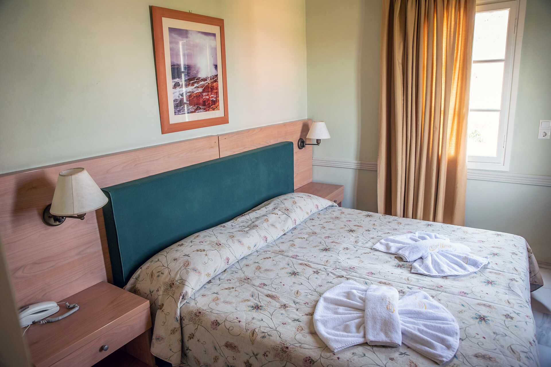 Dobbeltrom med balkong eller terrasse. En dobbeltseng eller to enkeltsenger. Mulig med ekstraseng i enkeltseng. Luftkondisjonering inkludert. Safe mot avgift. Kjøleskap. TV. Hårføner. Dusj og wc. Rengjøring 7 ggr/uke. Barn under 2 år regnes inn i maksantallet i rommet.