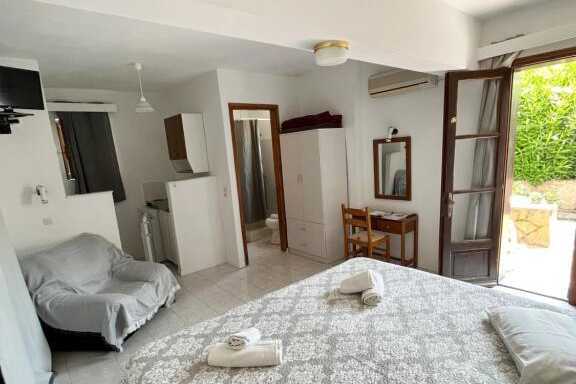 Ettromsleilighet med markterrasse. Minikjøkken. En dobbeltseng eller to enkeltsenger. Minikjøkken med kokeplater, kjøleskap og enkelt kjøkkenutstyr. Wifi, luftkondisjonering og safe inkludert. Dusj og wc. Rengjøring 6 ggr/uke.