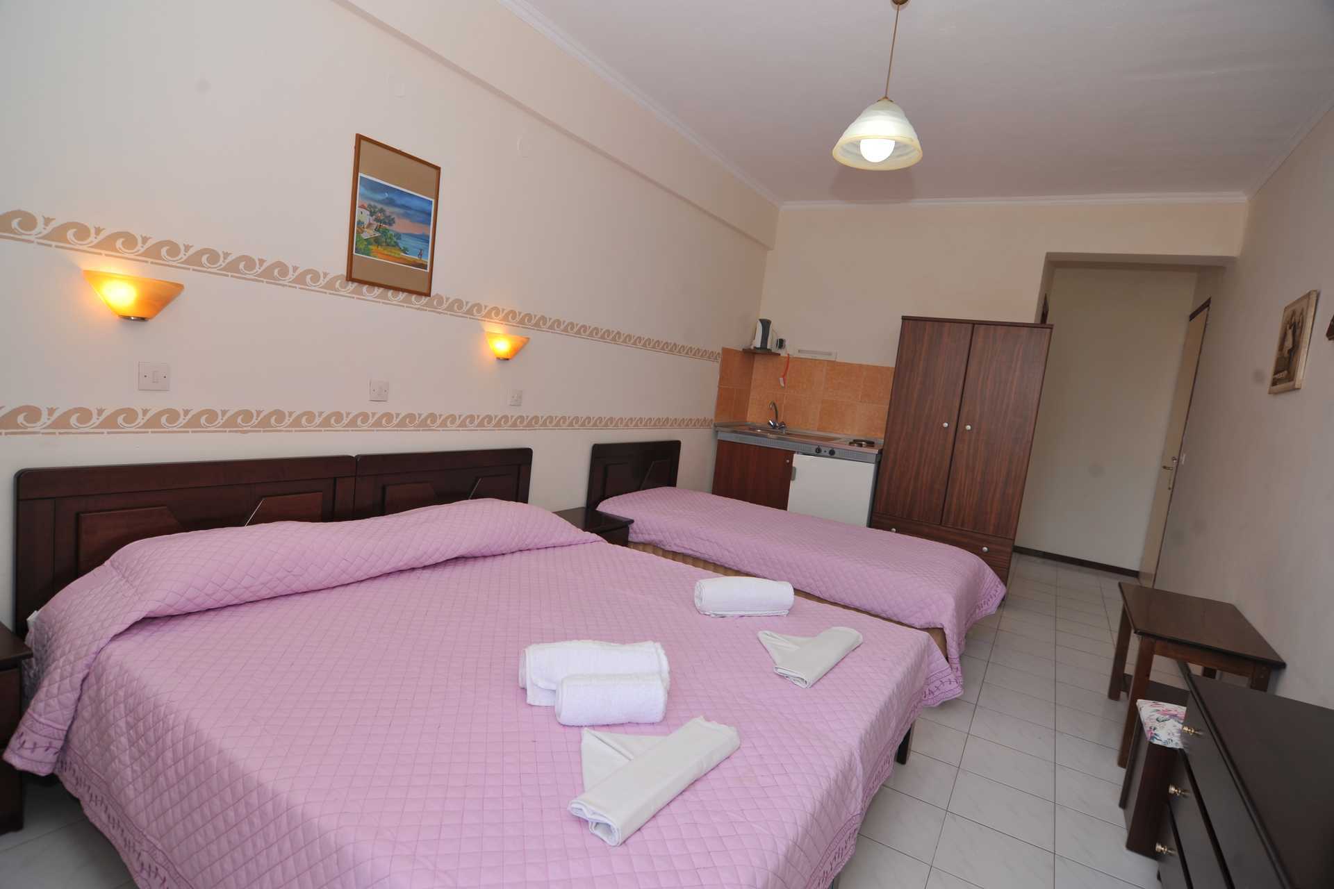Ettromsleilighet med markterrasse eller balkong i første etasje med havutsikt eller begrenset havutsikt. Soverom kombinert med minikjøkken. To enkeltsenger. Minikjøkken med kokeplater, kjøleskap, vannkoker og enkelt kjøkkenutstyr. Wifi og luftkondisjonering er inkludert. TV med lokale kanaler. Dusj og wc. Rengjøring 6 ggr/uke.