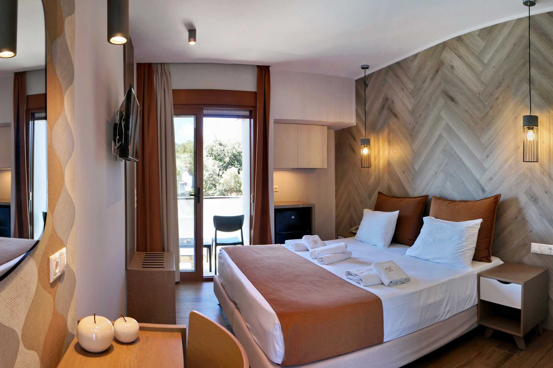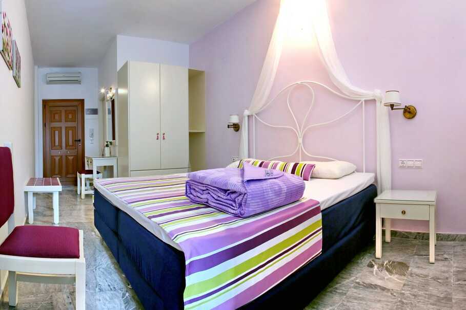Familierom med balkong eller terrasse. En dobbeltseng eller to enkeltsenger. Wifi, luftkondisjonering og safe inkludert. Kjøleskap. TV. Hårføner. Dusj og wc. Rengjøring 6 ggr/uke.