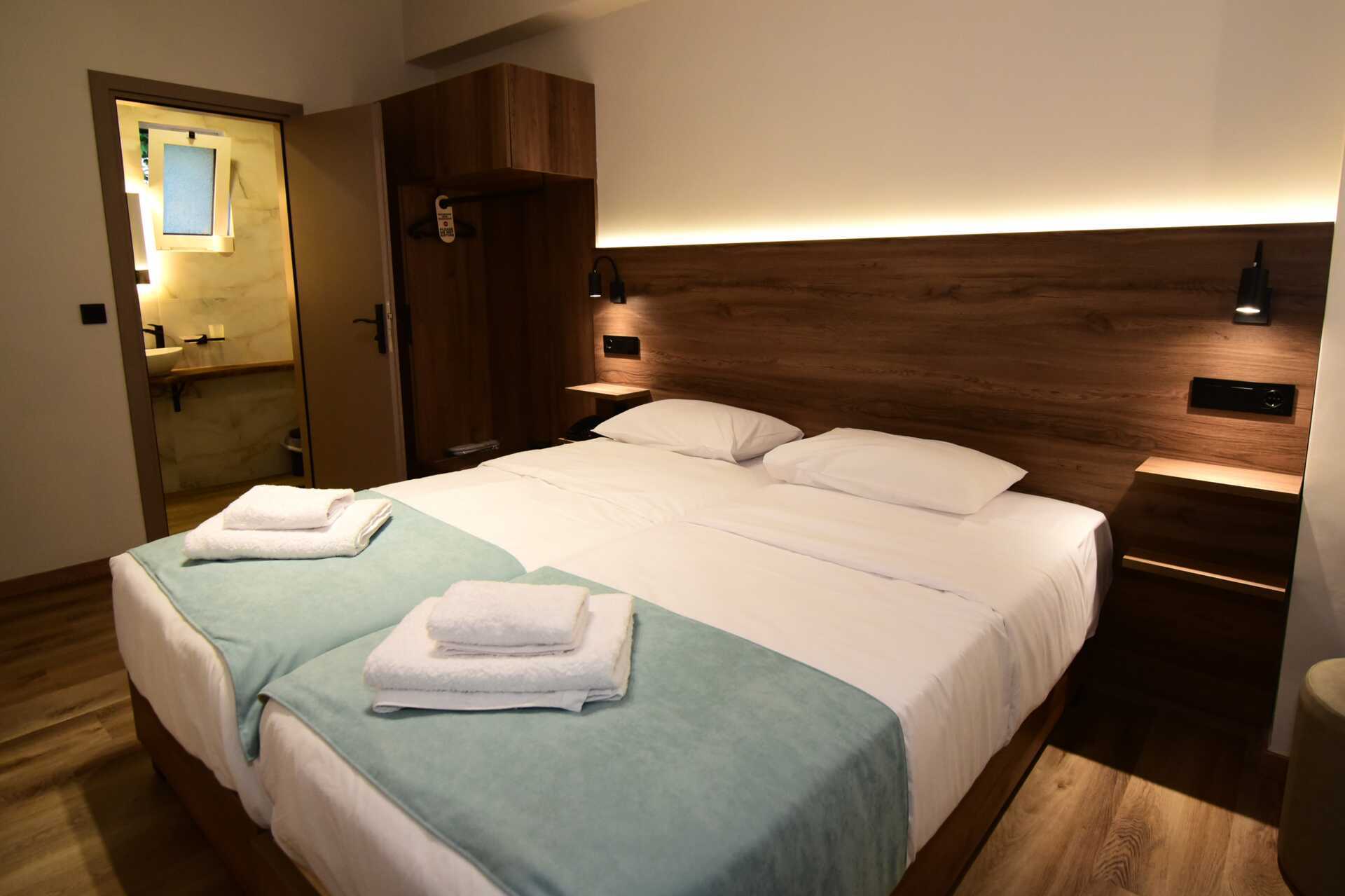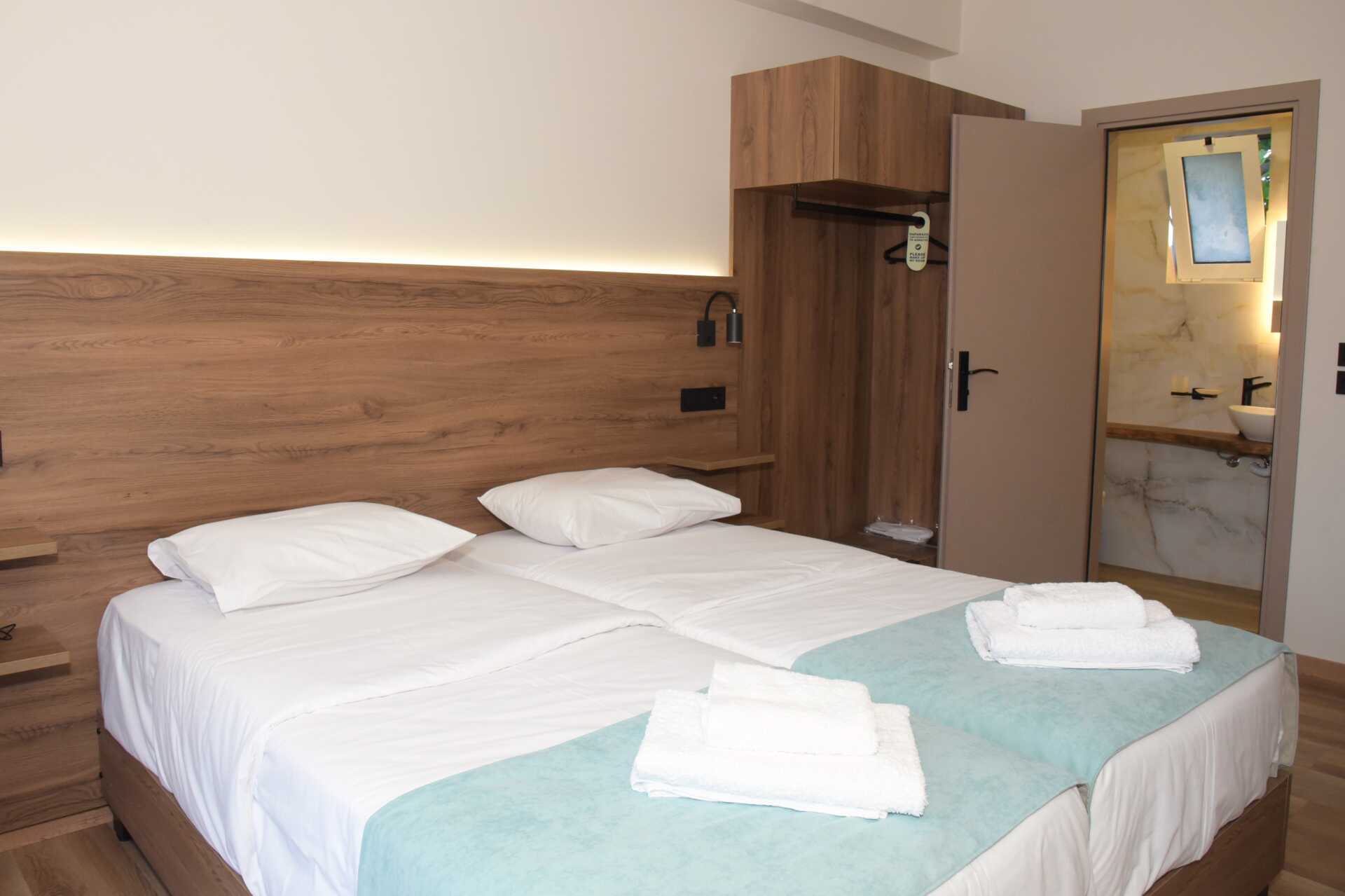 Dobbeltrom med balkong eller markterrasse. Markterrassen har utemøbler ved inngangen der andre gjester passerer. En dobbeltseng eller to enkeltsenger. Alle rom med markterrasse har to enkeltsenger. Wifi, luftkondisjonering og safe inkludert. Kjøleskap. Vannkoker. TV. Baderom med dusj og wc. Rengjøring 7 ggr/uke.