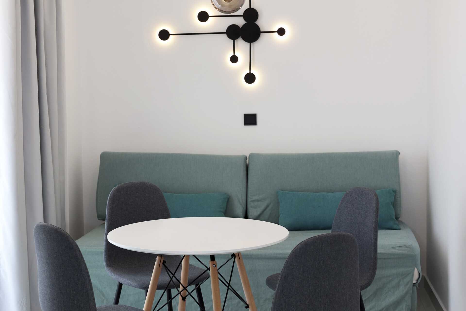Ettromsleilighet med balkong og havutsikt. Soverom kombinert med minikjøkken. En dobbeltseng eller to enkeltsenger. Minikjøkken med kjøleskap, kokeplater, stekeovn, kaffetrakter, vannkoker, brødrister, sandwichgrill og enkelt kjøkkenutstyr. Wifi, luftkondisjonering og safe inkludert. TV med lokale kanaler. Hårføner. Baderom med badekar eller dusj samt wc. Inngang via uteplass. Rengjøring 5 ggr/uke.
