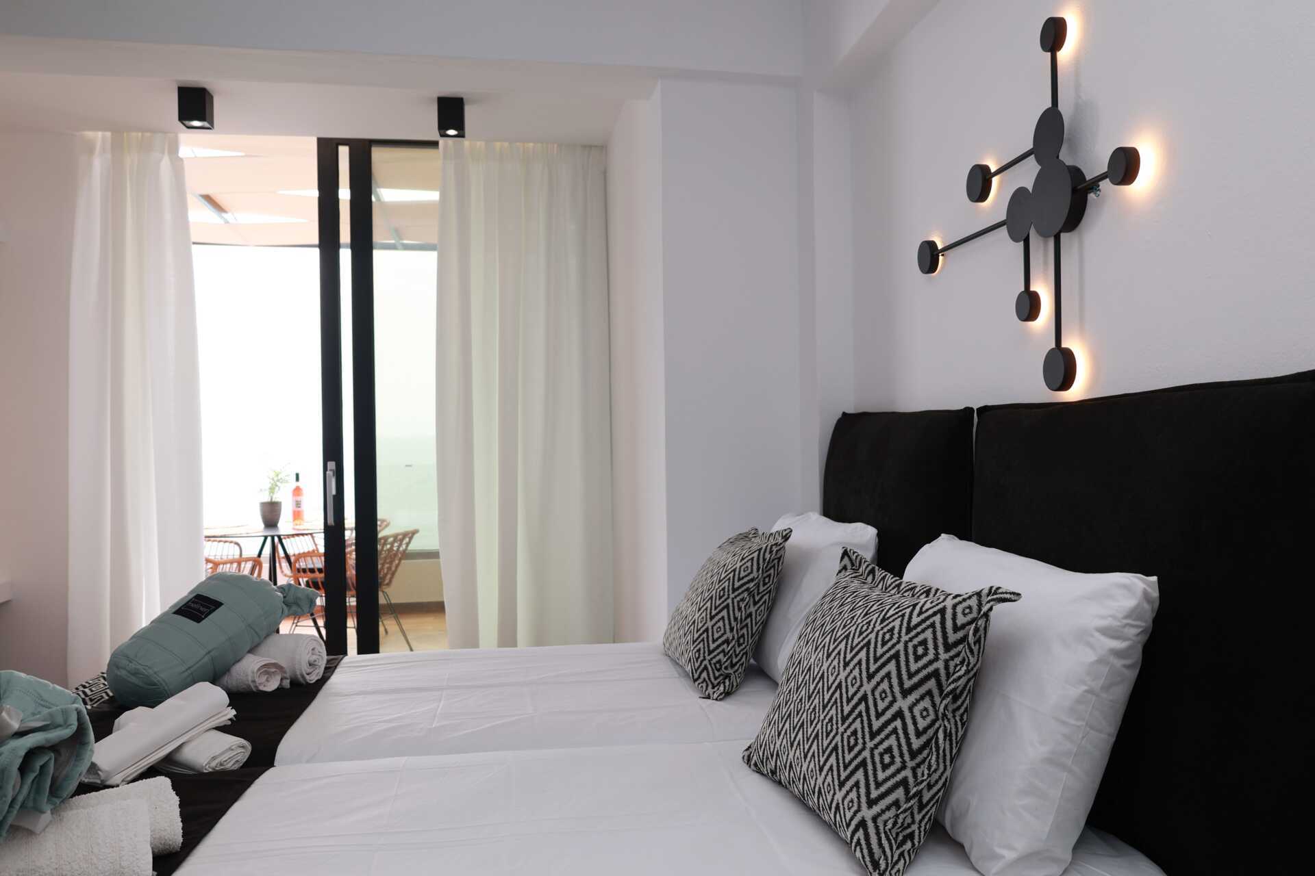 Mindre toromsleilighet med balkong og havutsikt. Et soverom og stue med minikjøkken. To enkeltsenger. Mulig med ekstraseng i enkeltseng. Minikjøkken med kjøleskap, kokeplater, stekeovn, kaffetrakter, vannkoker, brødrister, sandwichgrill og enkelt kjøkkenutstyr. Wifi, luftkondisjonering og safe inkludert. TV med lokale kanaler. Strykejern og strykebrett. Hårføner. Baderom med badekar eller dusj samt wc. Rengjøring 5 ggr/uke.