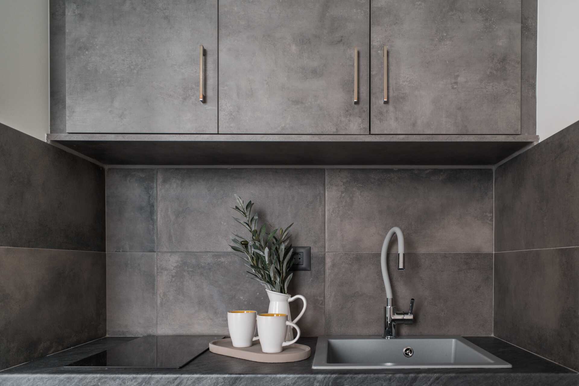Ettromsleilighet med balkong og havutsikt. Soverom kombinert med minikjøkken. En dobbeltseng. Mulig med ekstraseng i sovesofa. Minikjøkken med kokeplater, kjøleskap med en liten fryseboks, mikrobølgeovn, sandwichgrill og enkelt kjøkkenutstyr. Wifi, luftkondisjonering og safe inkludert. TV. Badekåper. Hårføner. Baderom med dusj og wc. Rengjøring 7 ggr/uke.