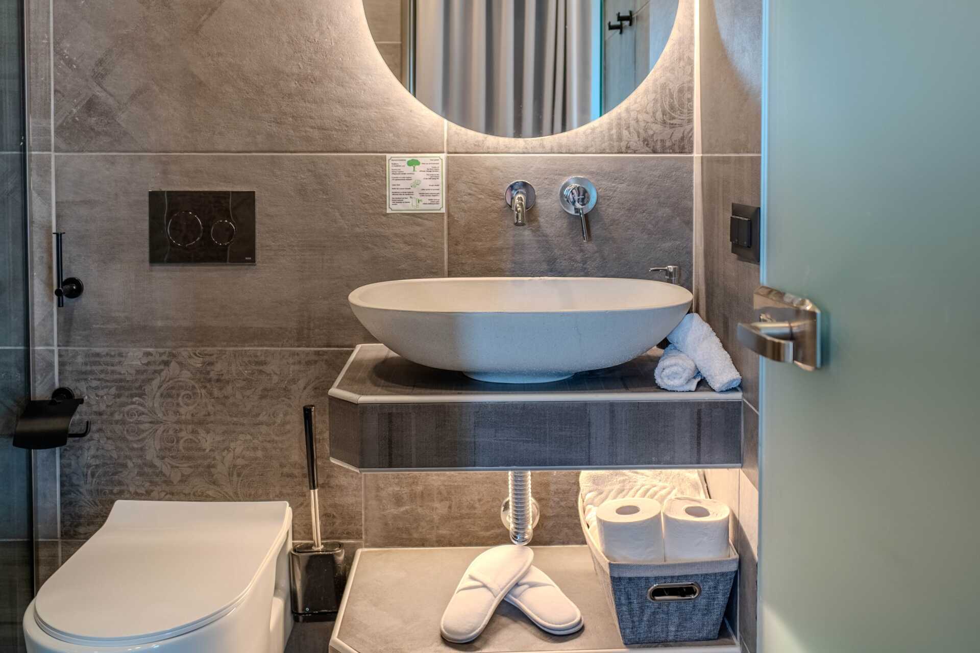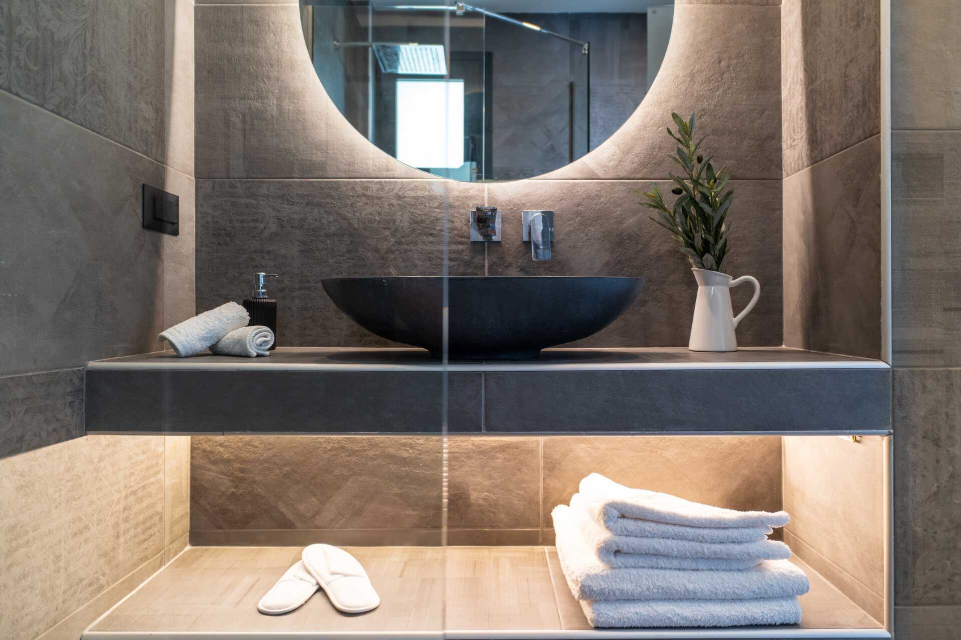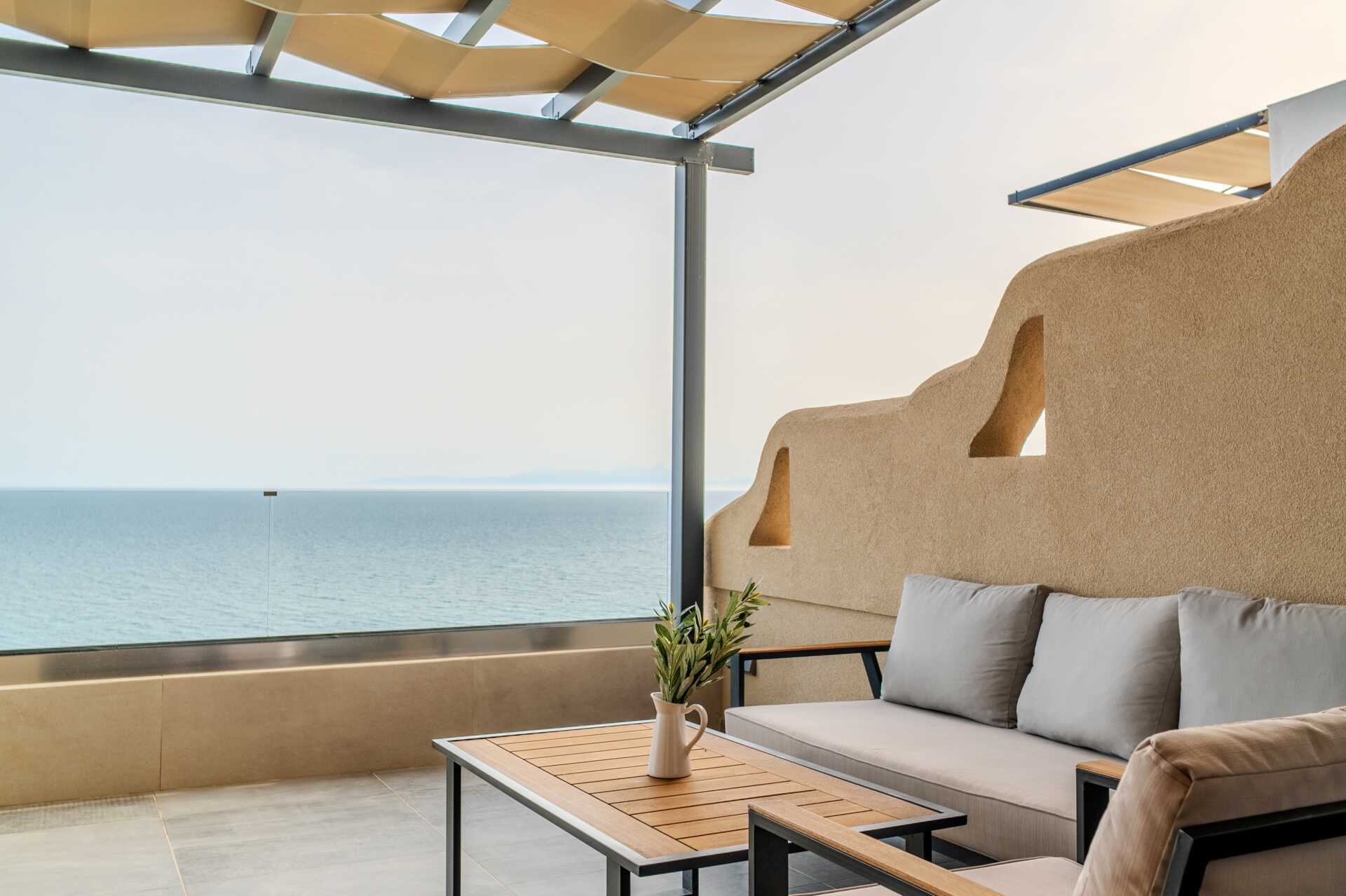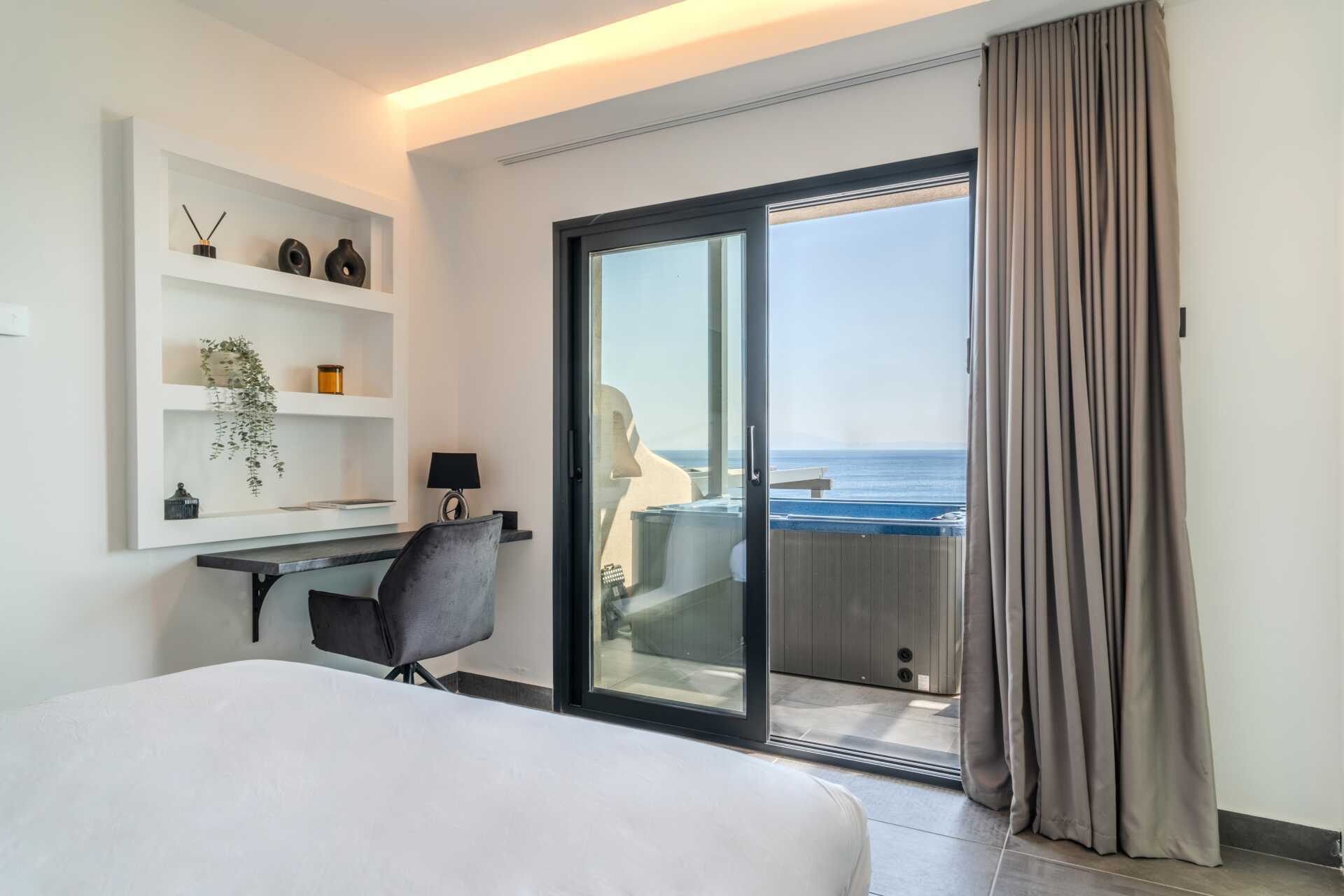 Toromsleilighet med balkong og havutsikt. På balkongen er det jacuzzi og solsenger samt bord og stoler. Soverom med minikjøkken. En dobbeltseng. Mulig med ekstrasenger i sovesofaer. Minikjøkken med kokeplater, kjøleskap med liten fryseboks, mikrobølgeovn, sandwichgrill og enkelt kjøkkenutstyr. Wifi, luftkondisjonering og safe inkludert. TV. Steamer. Badekåper. Hårføner. Bad med dusj og wc. Rengjøring 7 ggr/uke.