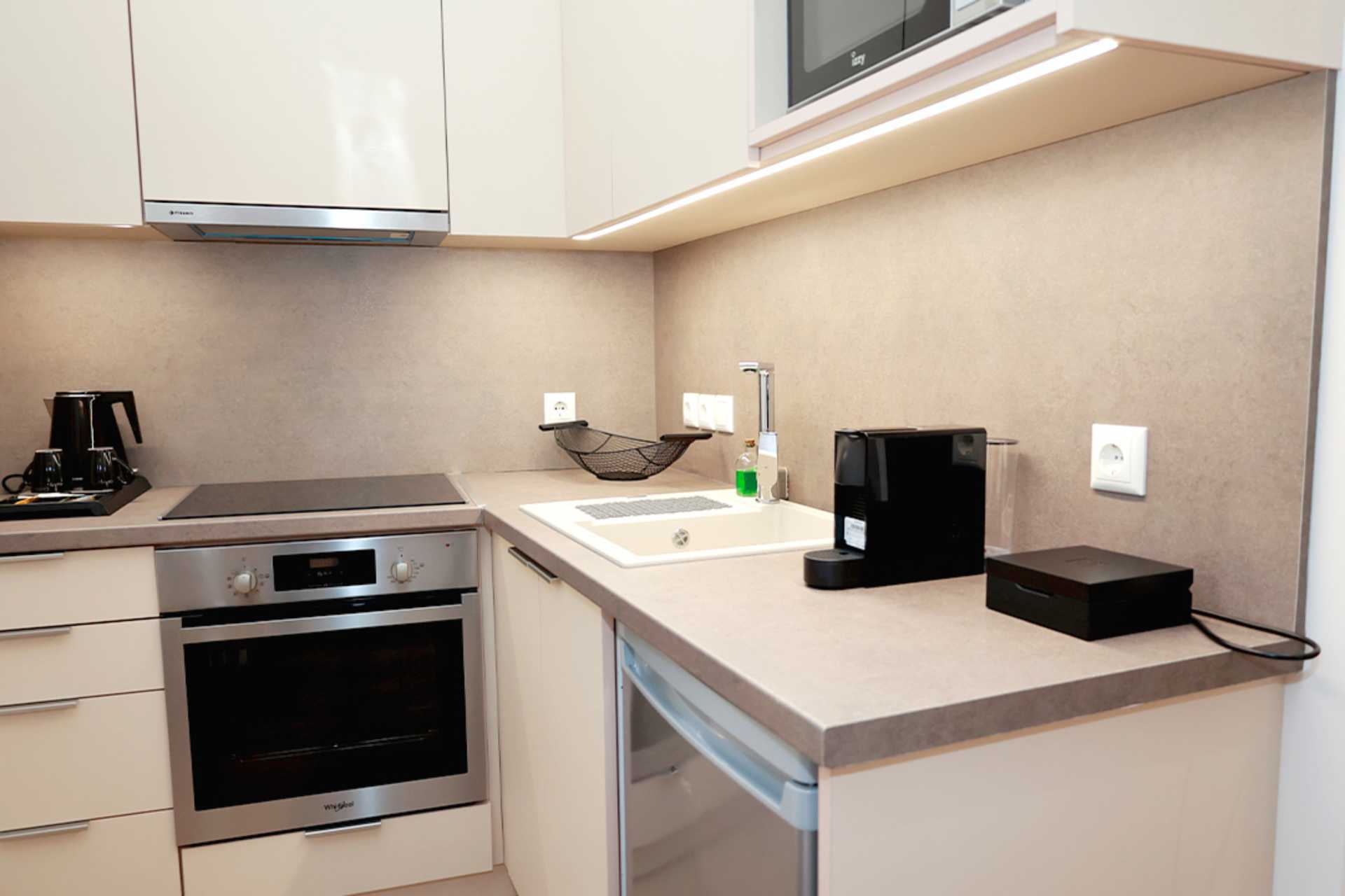 Større ettromsleilighet med fransk balkong. Minikjøkken. En dobbeltseng eller to enkeltsenger. Mulig med en ekstraseng i sovesofa. Minikjøkken med kokeplater, kjøleskap, mikrobølgeovn, vannkoker, kaffetrakter og enkelt kjøkkenutstyr. Wifi, luftkondisjonering og safe inkludert. TV. Vaskemaskin. Badekåper. Hårføner. Baderom med dusj og wc. Rengjøring 6 ggr/uke.
