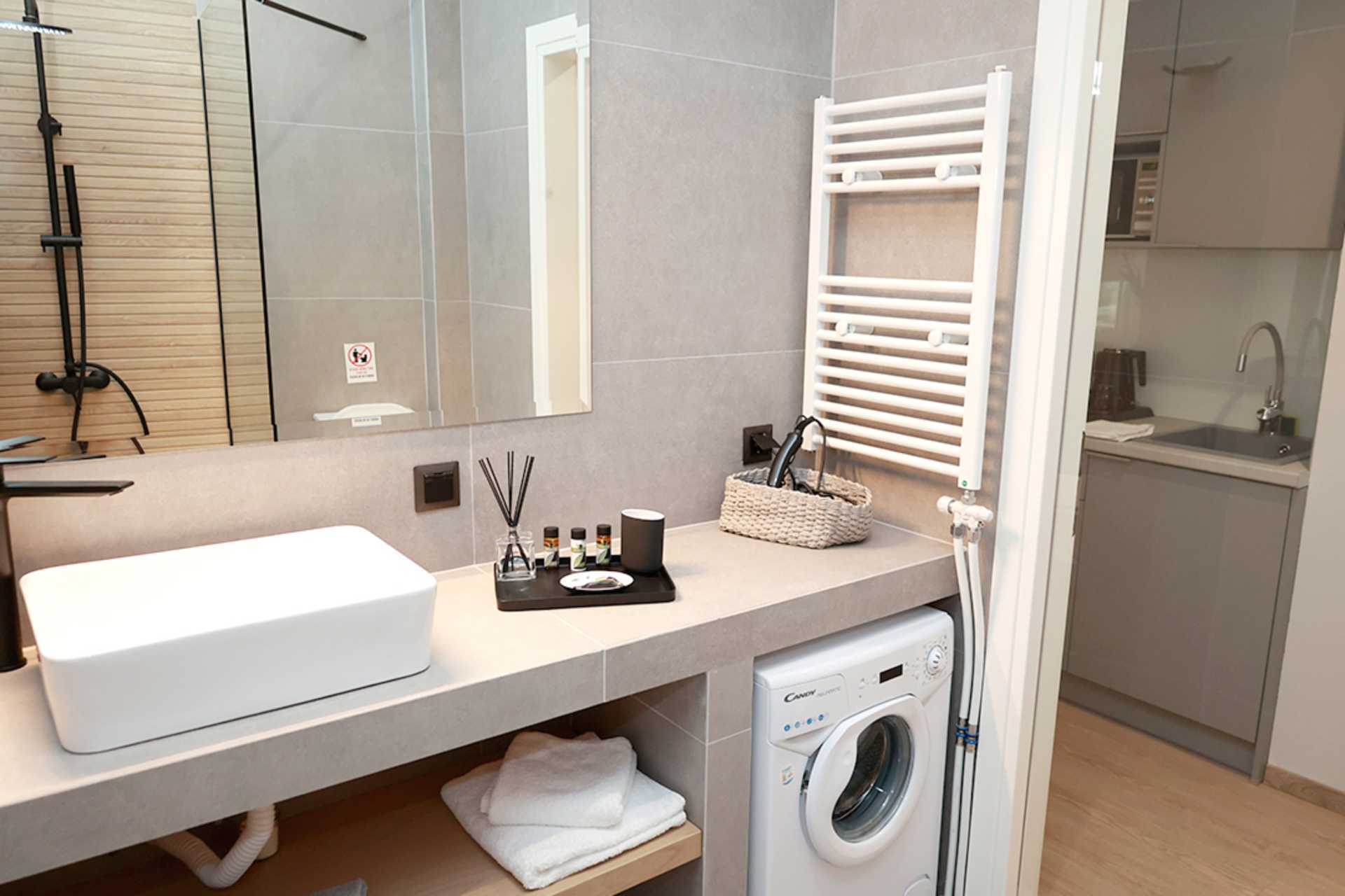 Ettromsleilighet i etasje med markterrasse. To enkeltsenger eller en dobbeltseng. Mulig med en ekstraseng i sovesofa. Minikjøkken med kokeplater, kjøleskap, mikrobølgeovn, vannkoker, kaffetrakter og enkelt kjøkkenutstyr. Wifi, luftkondisjonering og safe inkludert. TV. Vaskemaskin. Badekåper. Hårføner. Baderom med dusj og wc. Rengjøring 6 ggr/uke.