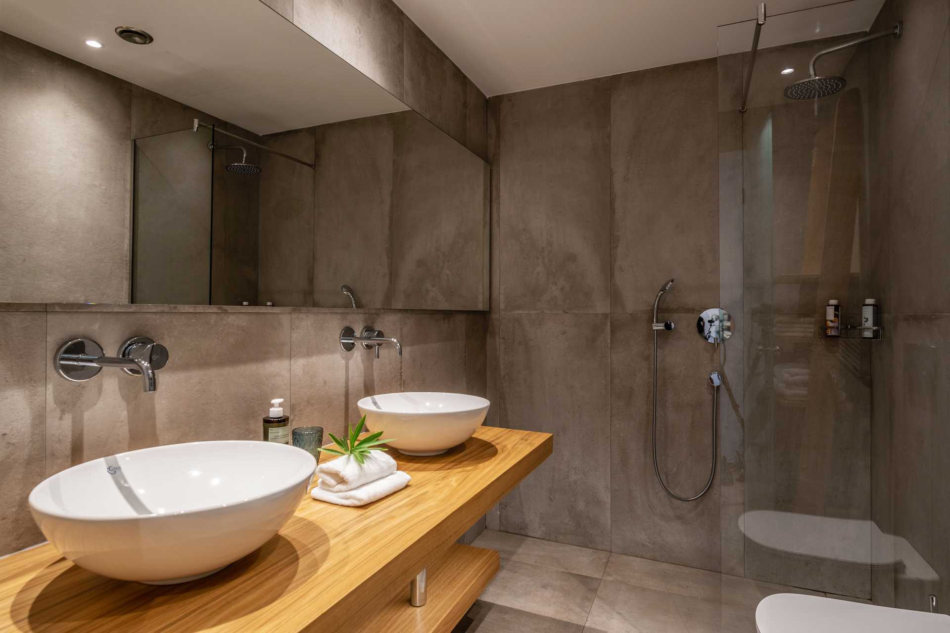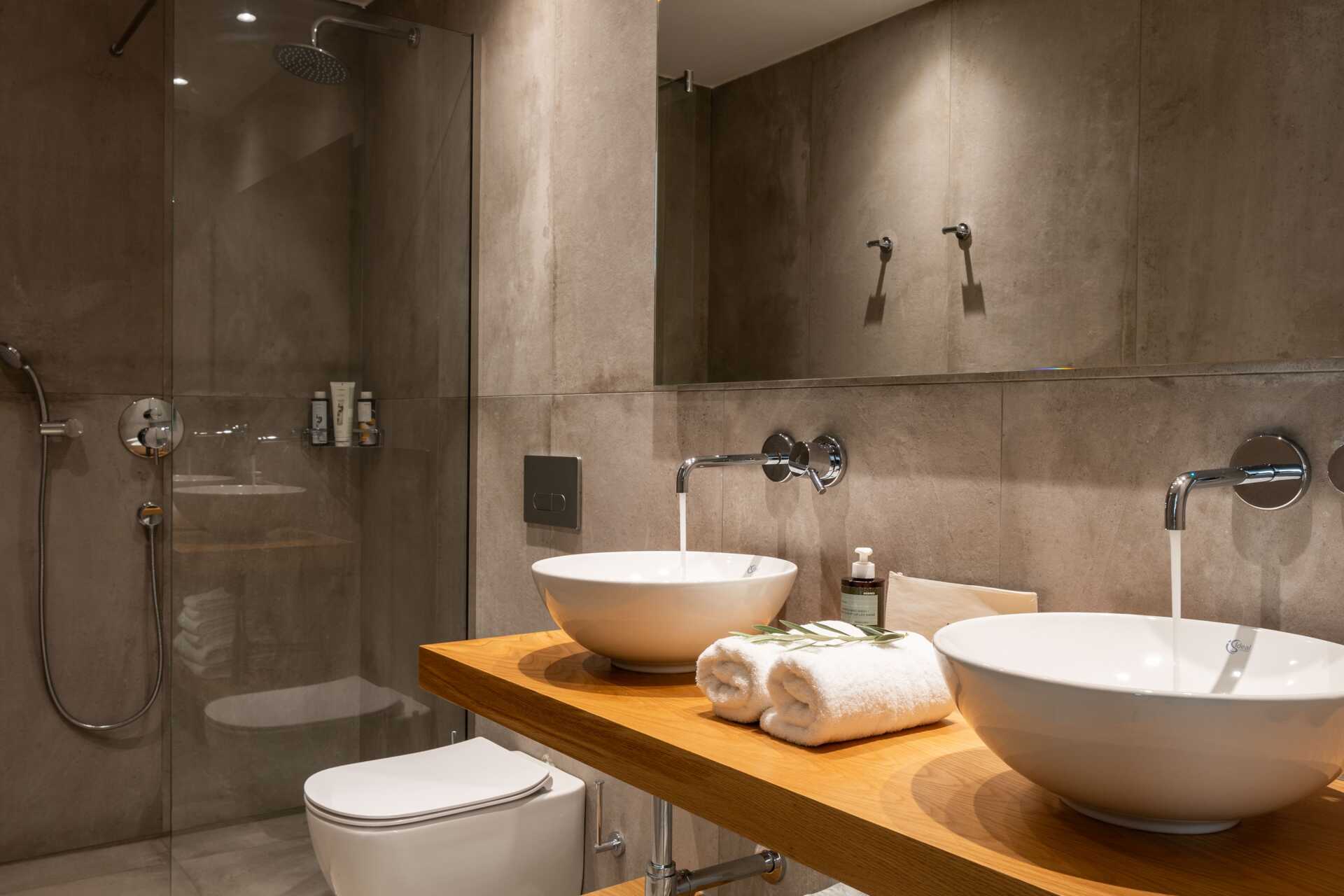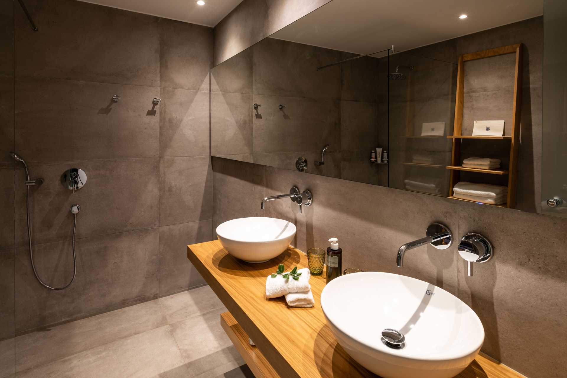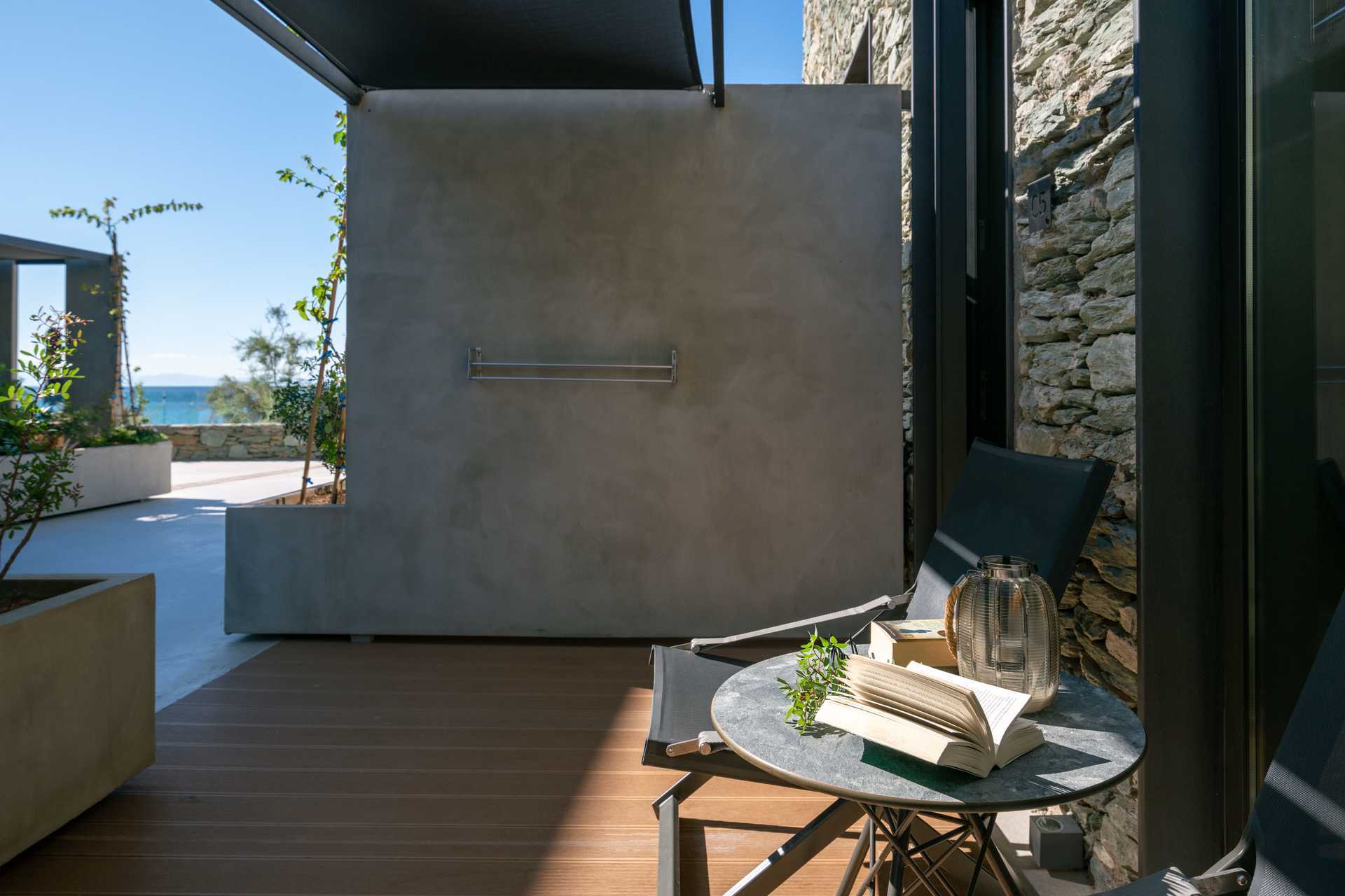 Dobbeltrom i etasje med markterrasse, noen med begrenset havutsikt. En trapp opp til en sovehems hvor sovekomforten er ekstra god med en komfortabel dobbeltseng og sengetøy av høy kvalitet. Mulig med ekstraseng i enkeltseng. Wifi, luftkondisjonering og safe inkludert. Minibar/kjøleskap. Nespresso kaffemaskin, fire kaffekapsler inkludert, flere kan kjøpes i resepsjonen. Bluetooth-høyttalere kan lånes i resepsjonen mot et depositum. Hårføner. Et bad med dusj og wc i hver etasje. Rengjøring annenhver dag.