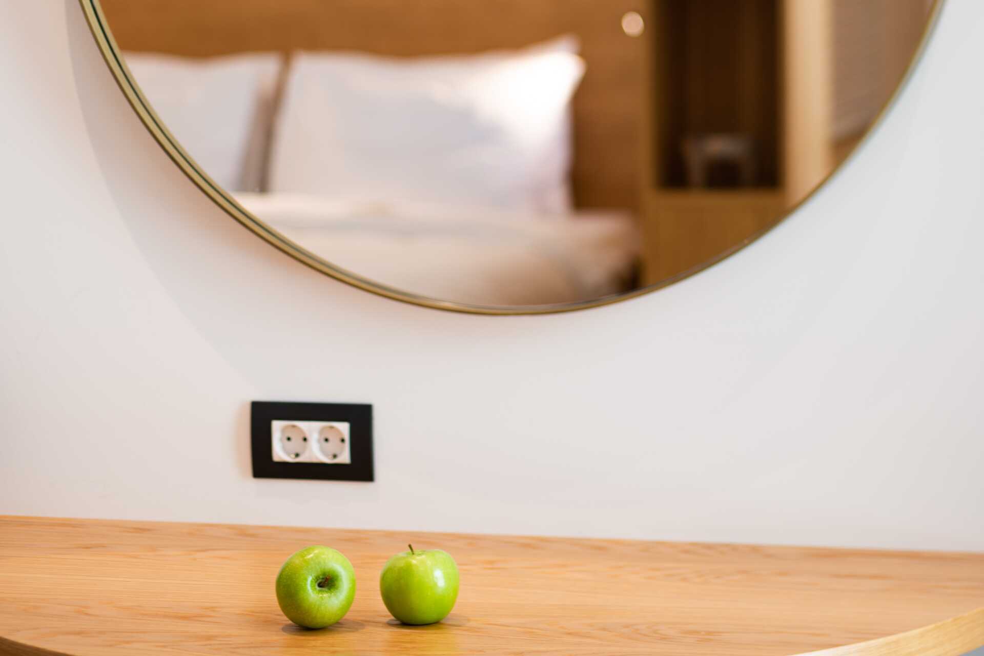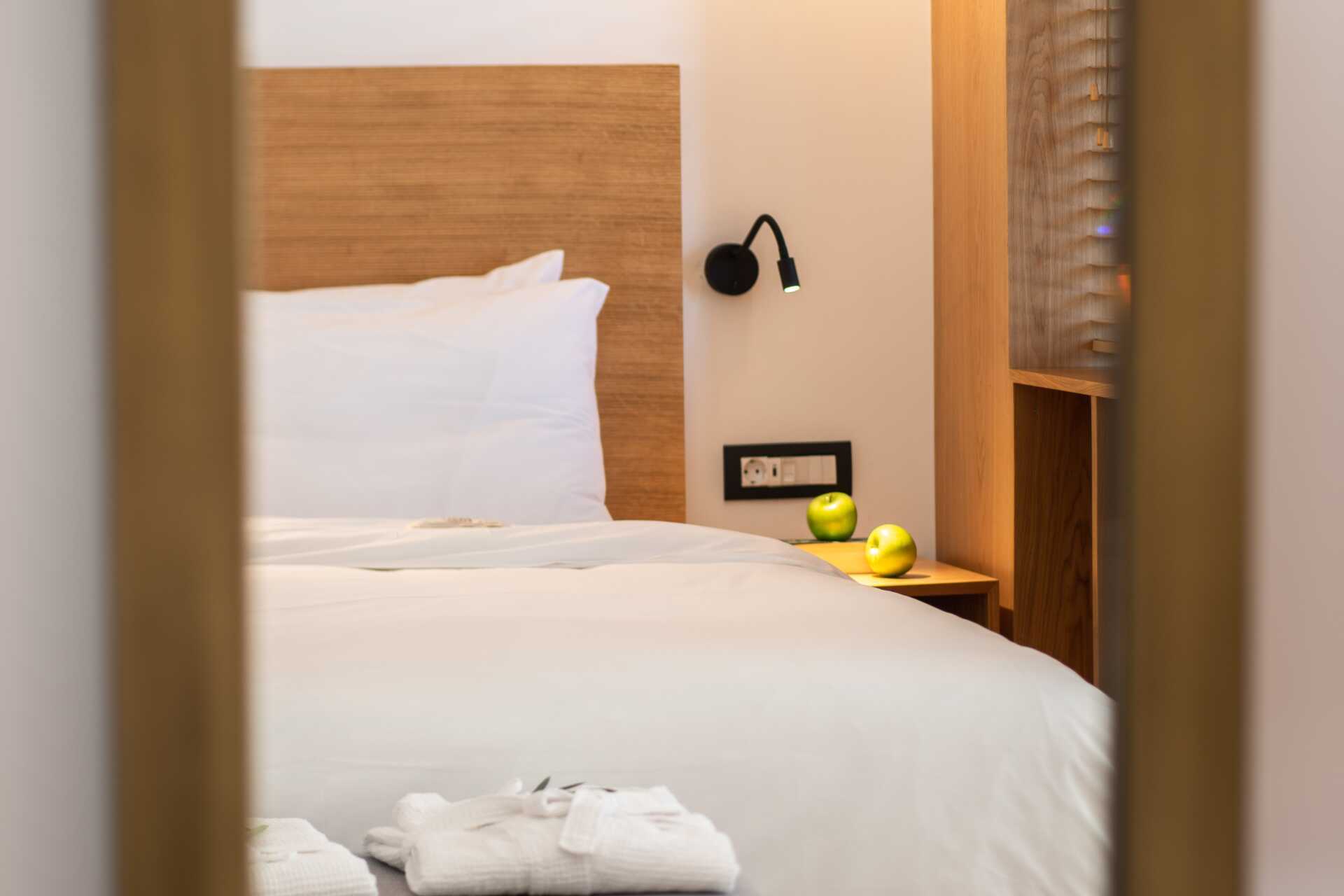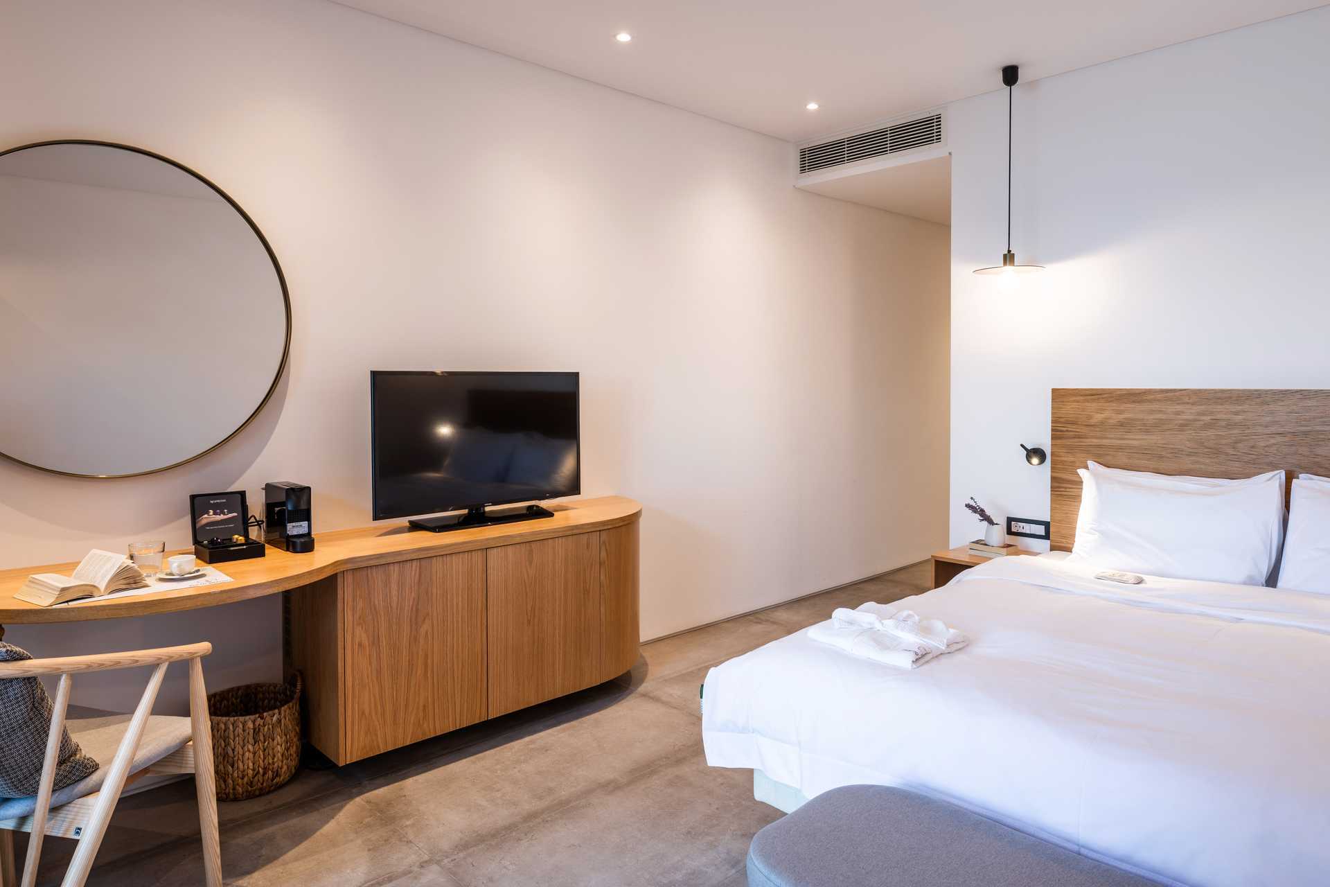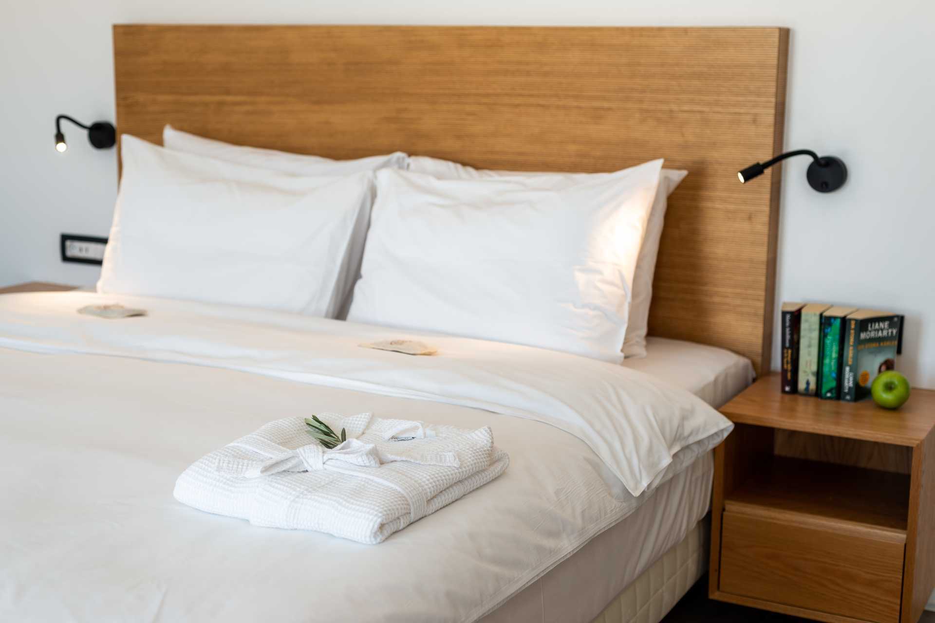 Dobbeltrom med balkong eller terrasse, noen med havutsikt. Sovekomforten er noe ekstra med en komfortabel dobbeltseng og sengetøy av høy kvalitet. Wifi, luftkondisjonering og safe er inkludert. Minibar/kjøleskap. Nespresso kaffemaskin, fire kaffekapsler inkludert, flere kan kjøpes i resepsjonen. Bluetooth-høyttalere kan lånes i resepsjonen mot et depositum. Hårføner. Dusj og wc. Rengjøring annenhver dag.