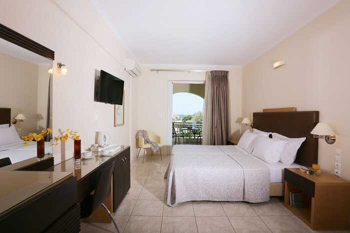 Dobbeltrom med balkong. En dobbeltseng eller to enkeltsenger. Mulig med ekstraseng i sovesofa eller feltseng. Wifi, luftkondisjonering og safe inkludert. Kjøleskap. Vannkoker. TV med internasjonale kanaler. Badekåper og tøfler. Hårføner. Baderom med badekar eller dusj samt wc. Barn under 2 år regnes inn i maksantallet i rommet.