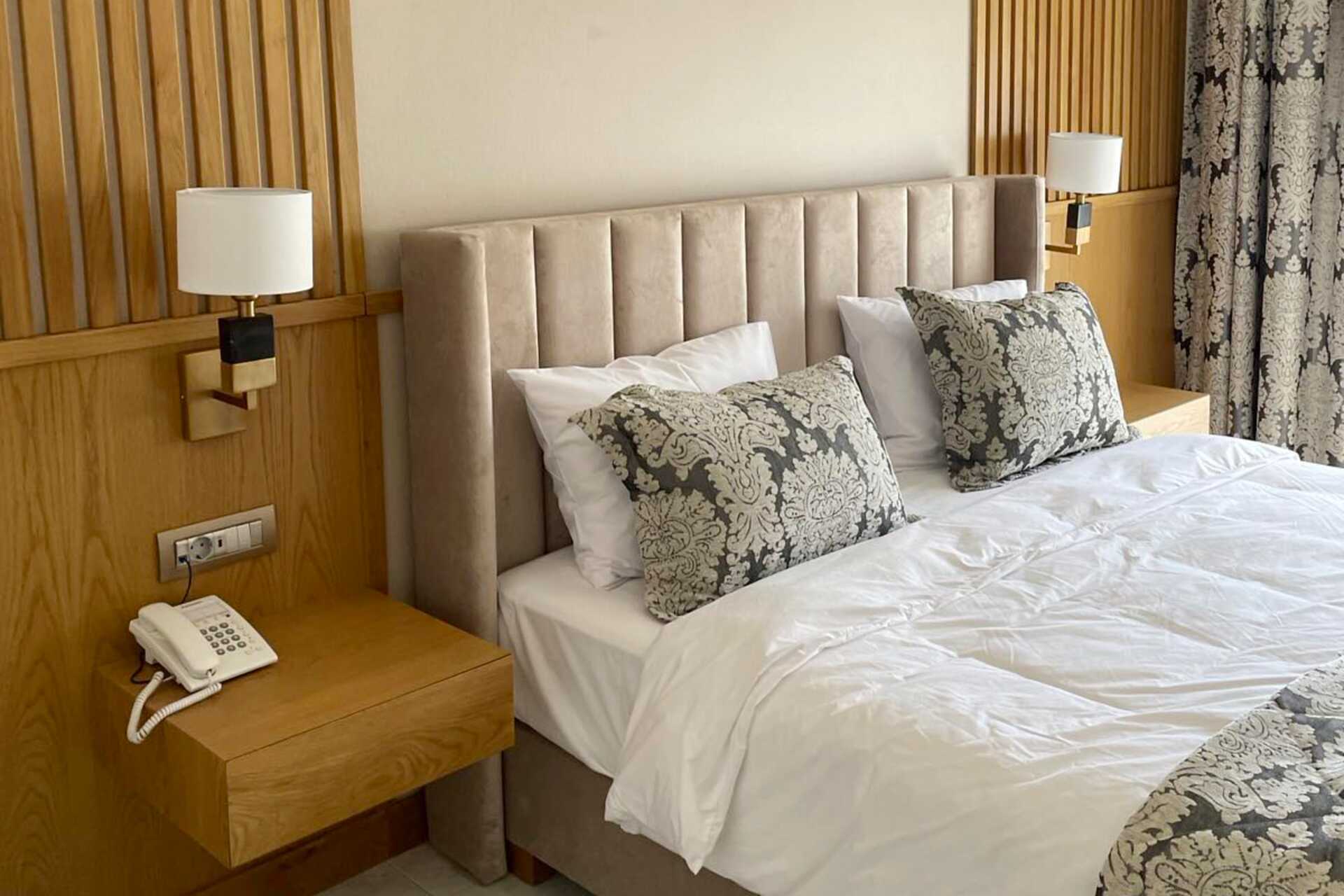 Superiorrom med balkong eller terrasse. En dobbeltseng eller to enkeltsenger. Wifi, luftkondisjonering og safe inkludert. Kjøleskap. Vannkoker samt kaffe og te. TV. Hårføner. Dusj og wc. Rengjøring 7 ggr/uke.