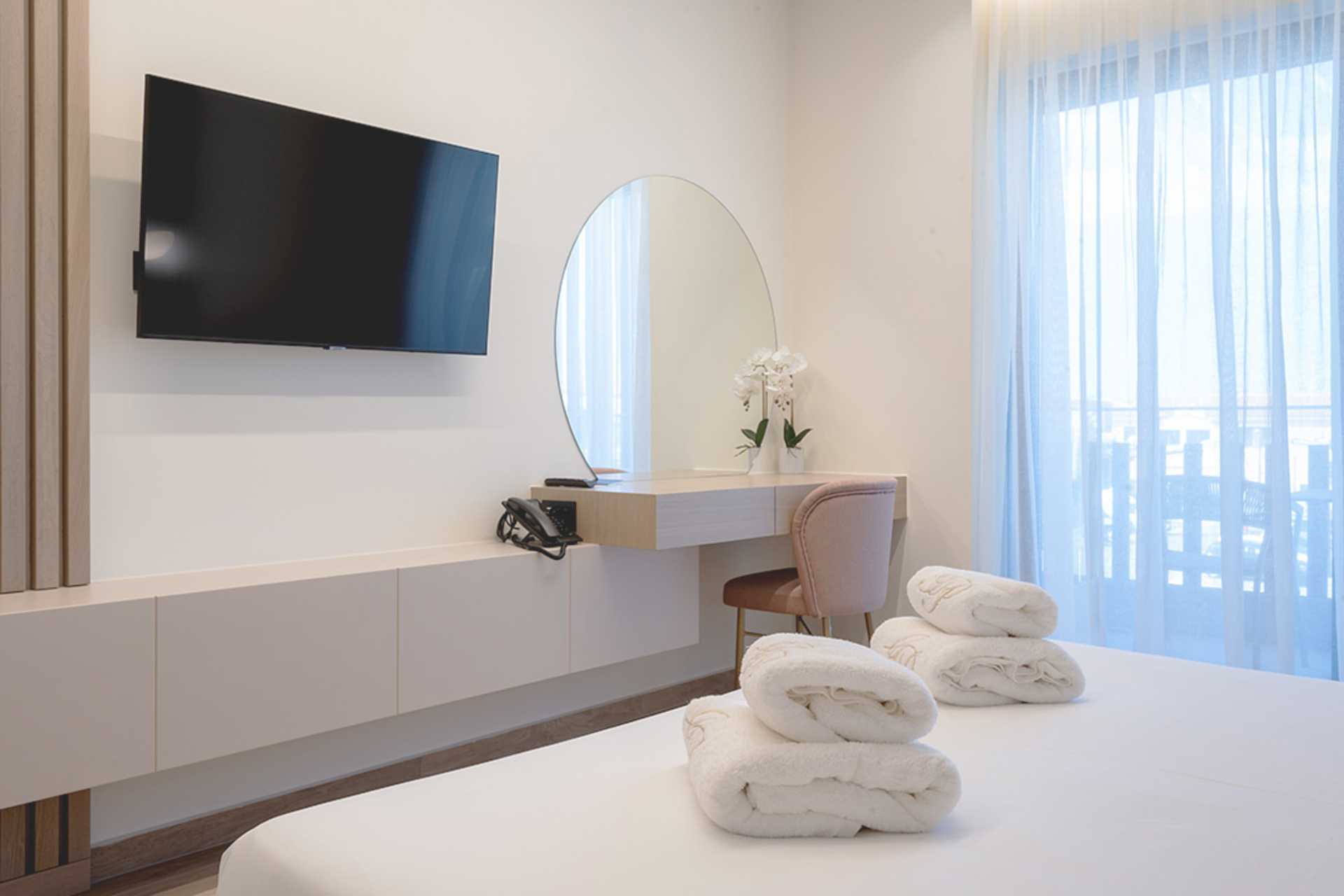 Dobbeltrom med balkong eller markterrasse. En dobbeltseng eller to enkeltsenger. Mulig med en ekstraseng i sovesofa. Kjøleskap. Vannkoker samt kaffe og te. Wifi, luftkondisjonering og safe. TV. Tøfler. Hårføner. Dusj og wc. Rengjøring 6 ggr/uke.