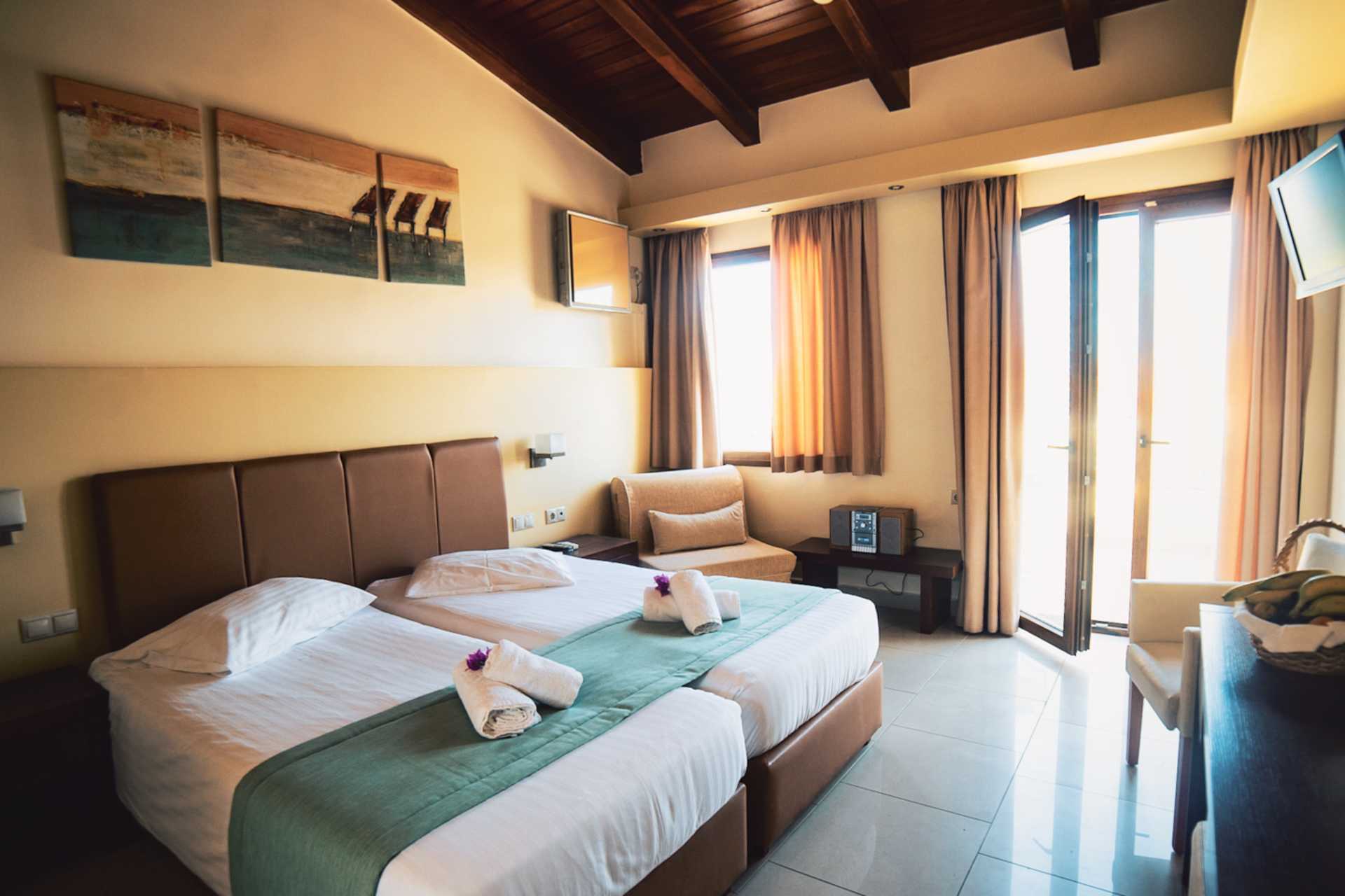 Dobbeltrom med balkong og havutsikt eller begrenset havutsikt. To enkeltsenger. Mulig med ekstraseng i enkeltseng. Wifi og luftkondisjonering inkludert. Kjøleskap. Vannkoker samt kaffe og te. TV. Badekar samt wc, hårføner. Rengjøring 7 ggr/uke.