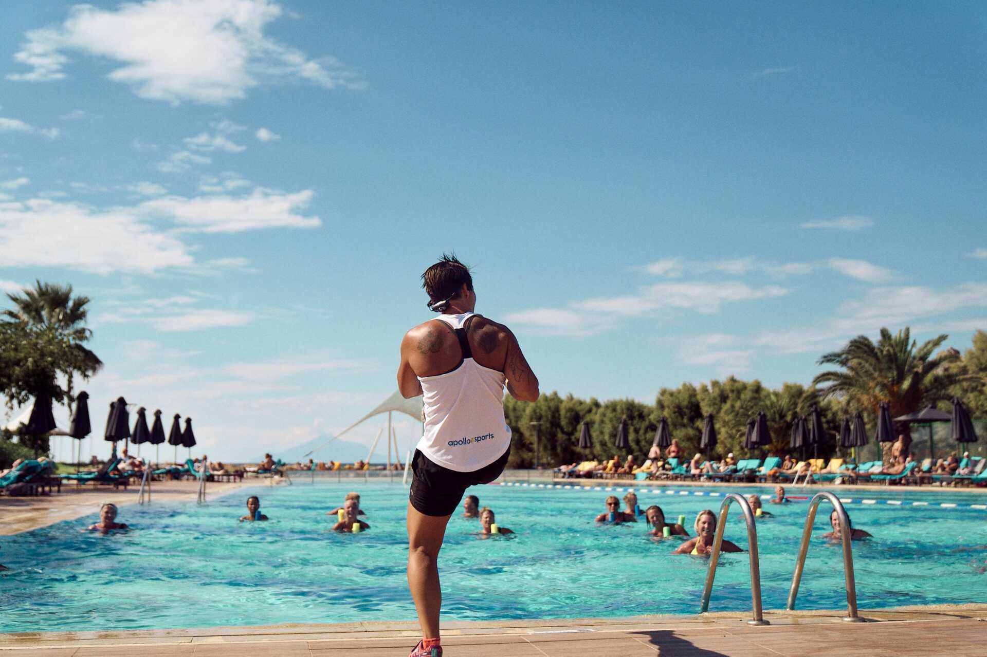Ønsker du å trene svømming kan du bruke hotellets basseng. Det er cirka 50 m (ikke olympisk) og egner seg best om morgenen. På stranden har hotellet to brygger som er gode å gå inn for å svømme i åpent vann i det krystallklare vannet.