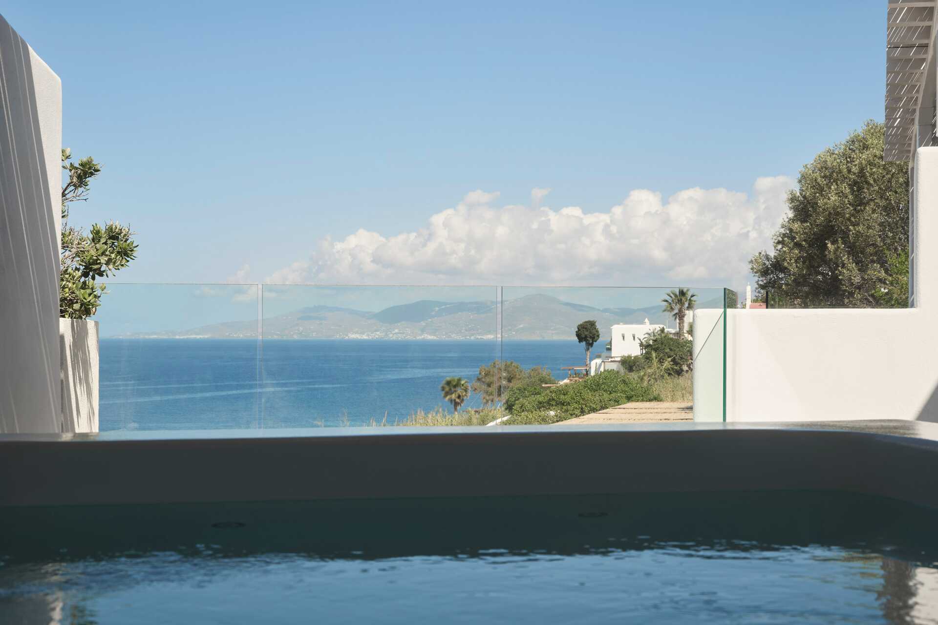 Suite med havutsikt og jacuzzi på markterrassen. På terrassen er det også en komfortabel loungesofa og tak som skjermer for solen. En dobbeltseng. Mulig med en ekstraseng i sovesofa. Wifi, luftkondisjonering og safe inkludert. Minibar. Nespresso kaffemaskin. TV. Marshall Bluetooth-høyttaler. Badekåper og tøfler. Hårføner. Dusj og wc. Baderomsprodukter fra Acqua di Parma. Rengjøring 7 ggr/uke.