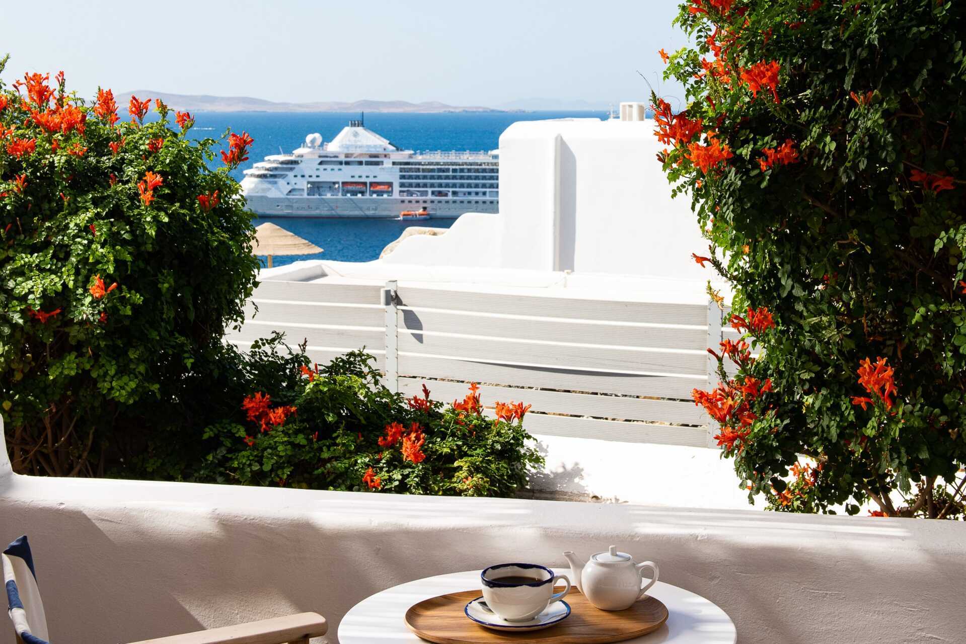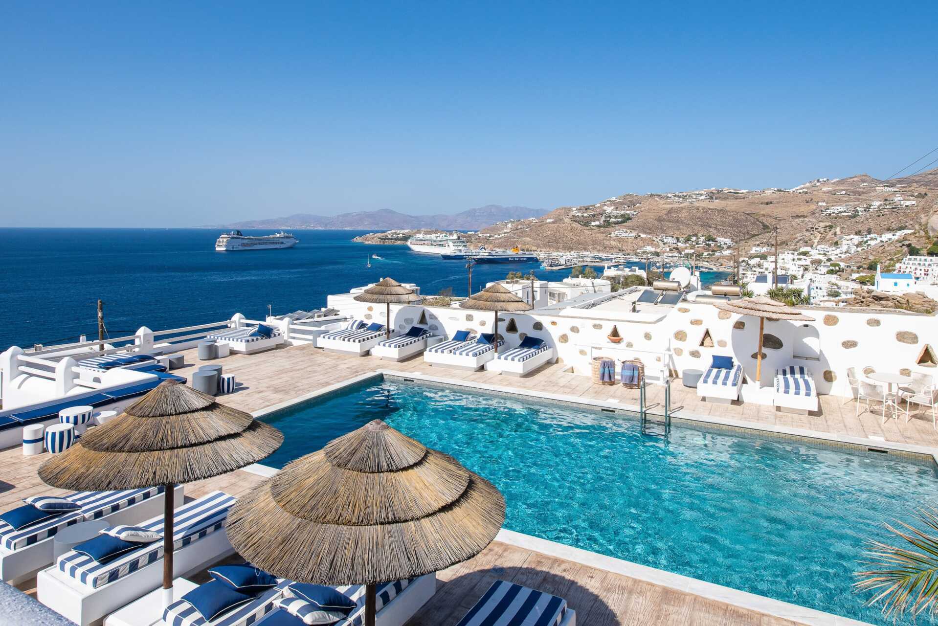 Tagoo Mykonos er et lite hotell i kykladisk stil. Fra hotellets takterrasse venter fantastisk utsikt over Egeerhavet og den livlige byen. Hotellet henvender seg til et voksent publikum og etterstreber en rolig atmosfære. Aldersgrensen for å bo på hotellet er 12 år.