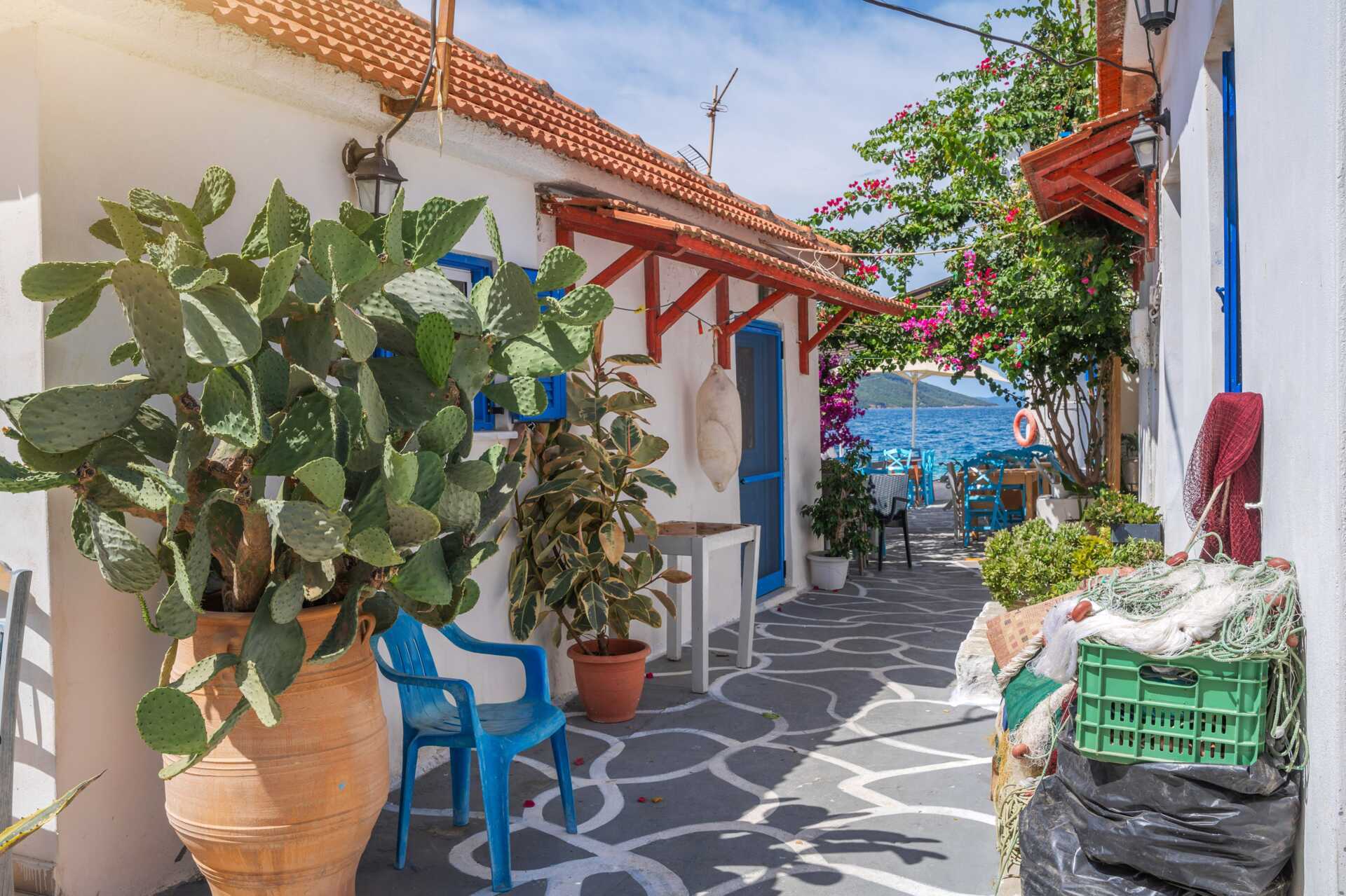 I Mytikas får du oppleve autentisk gresk hverdag, langt fra turistmengdene. Den sjarmerende landsbyen ligger rett ved vannet, hvor hus og butikker bokstavelig talt grenser til havet. En koselig brosteinsbelagt hovedgate går fra inngangen til byen til havnen og er perfekt for hyggelige spaserturer. På sommerettermiddager er gaten bilfri, noe som gjør at barna kan sykle rundt og skape en deilig og leken atmosfære.