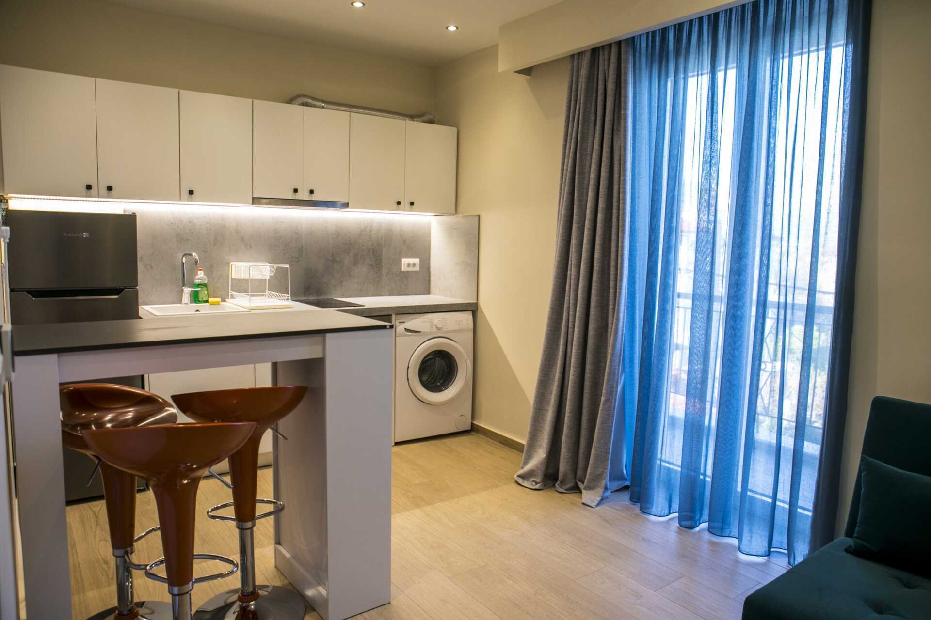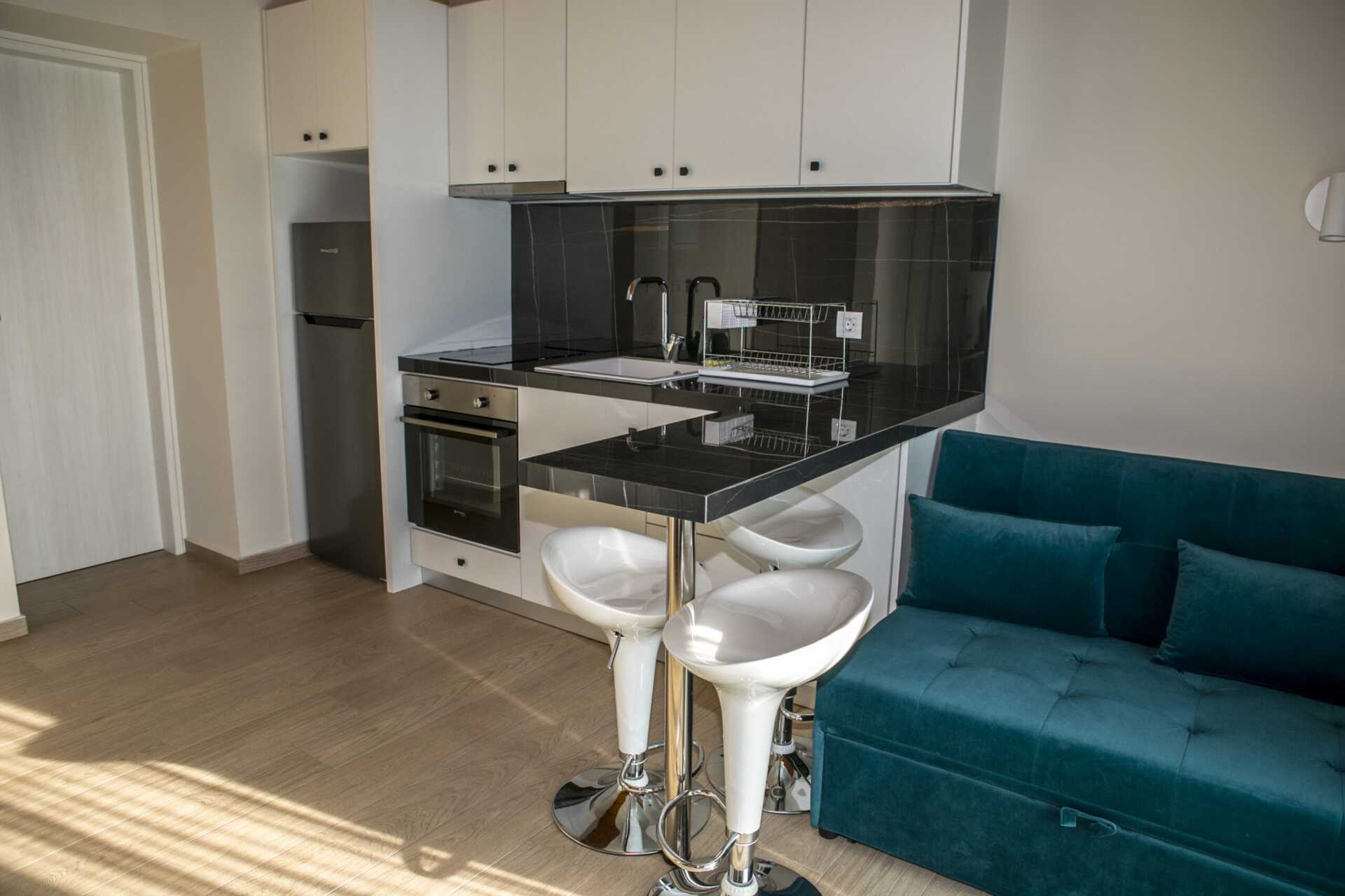 Toromsleilighet med balkong og havutsikt. Et soverom og en stue med minikjøkken. Noen av leilighetene har skråtak. En dobbeltseng. Mulig med en ekstraseng i sovesofa. Minikjøkken med spiseplass ved bardisk, kjøleskap og fryser, kokeplater, stekeovn og enkelt kjøkkenutstyr. TV. Strykejern og strykebrett. Vaskemaskin. Hårføner. Rengjøring 6 ggr/uke. Barn under 2 år regnes inn i maksantallet i rommet.
