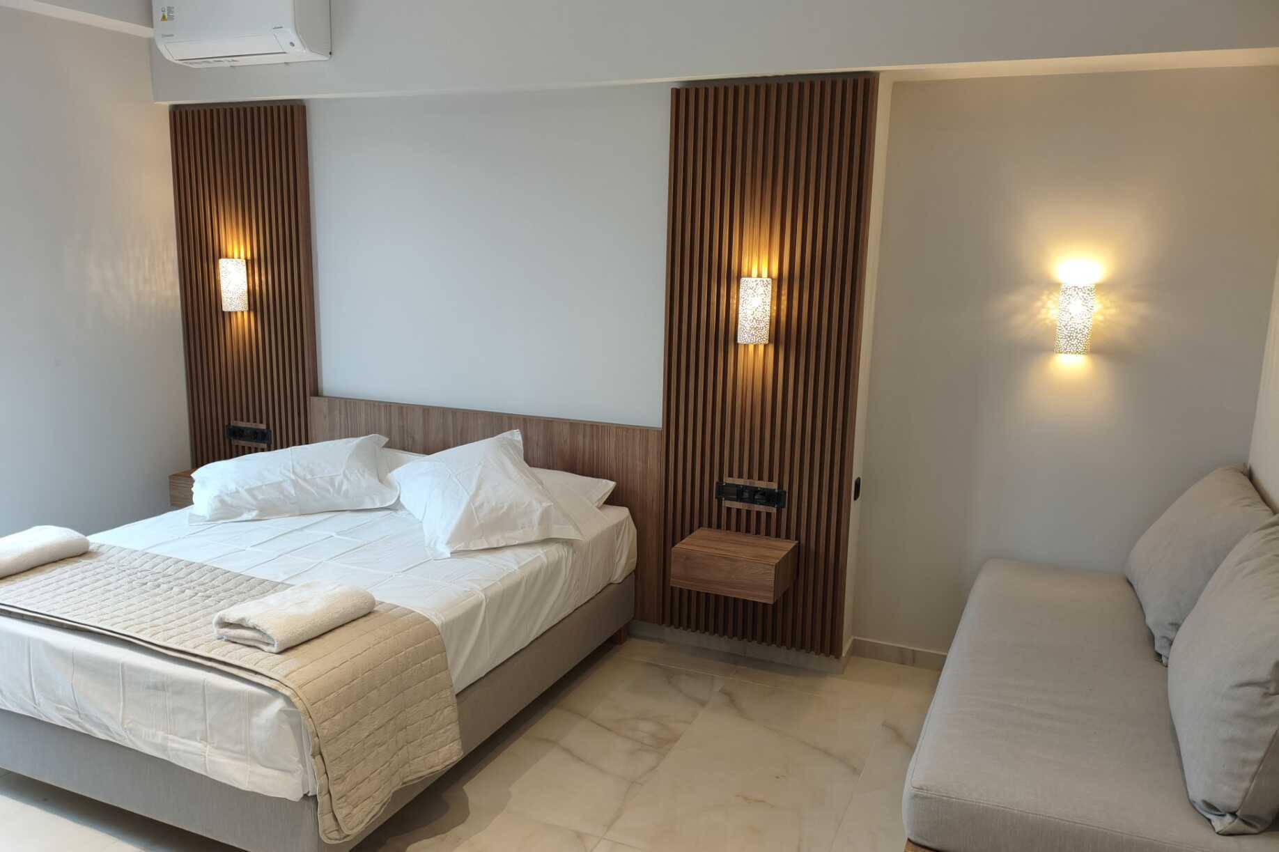 Dette nybygde hotellet kan friste med et basseng, solsenger og parasoller, og på andre siden av den lille gaten brer stranden og det glitrende blå vannet i Det joniske hav seg ut. Hotellet ligger i nærheten av flere fine strender i området.