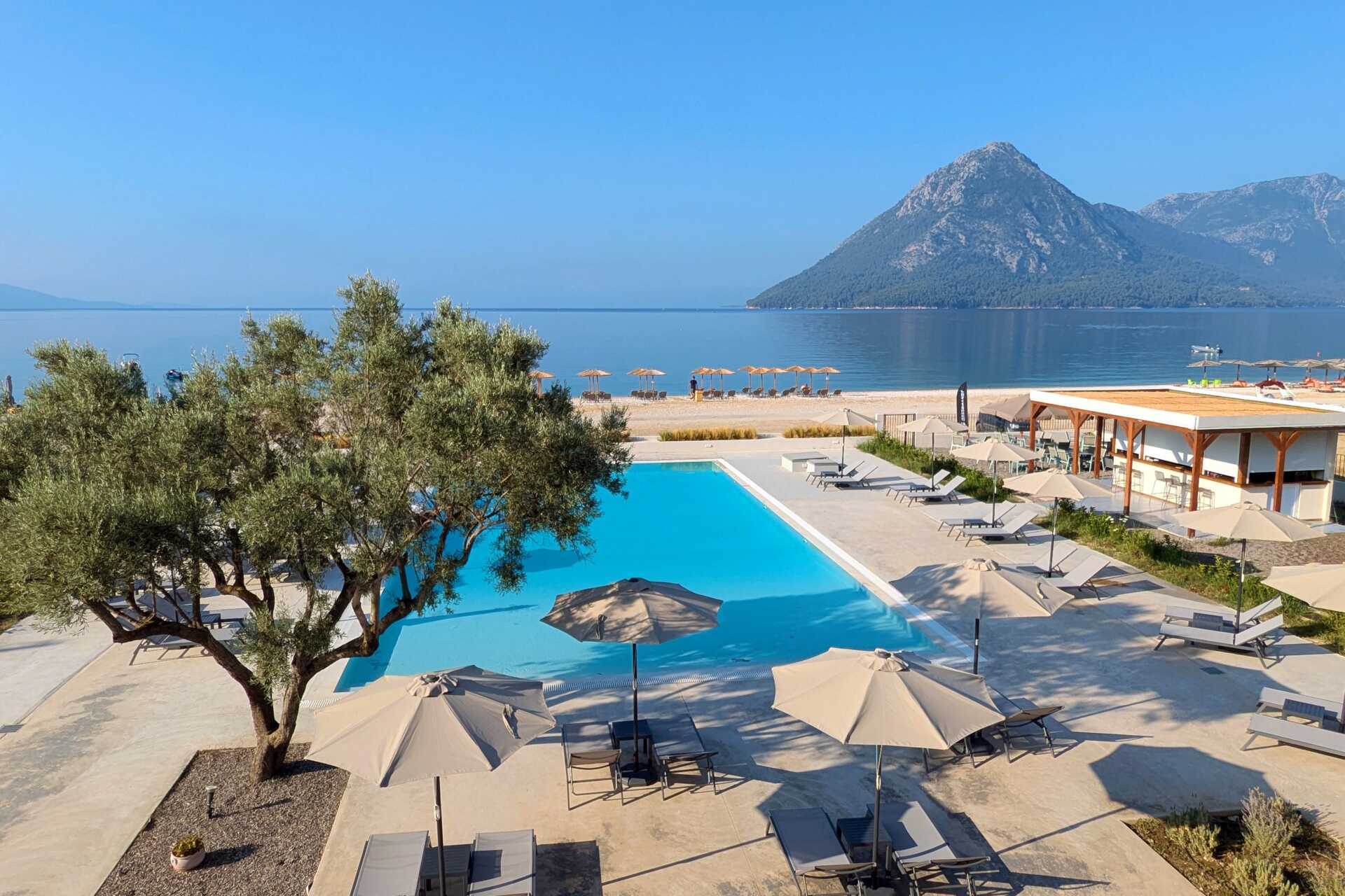 Deluxerom med balkong og havutsikt. En dobbeltseng. Mulig med ekstraseng i enkeltseng. Wifi og luftkondisjonering er inkludert. Kjøleskap. Vannkoker samt kaffe og te. TV. Tøfler. Hårføner. Dusj og wc. Rengjøring 6 ggr/uke. Barn under 2 år regnes inn i maksantallet i rommet.