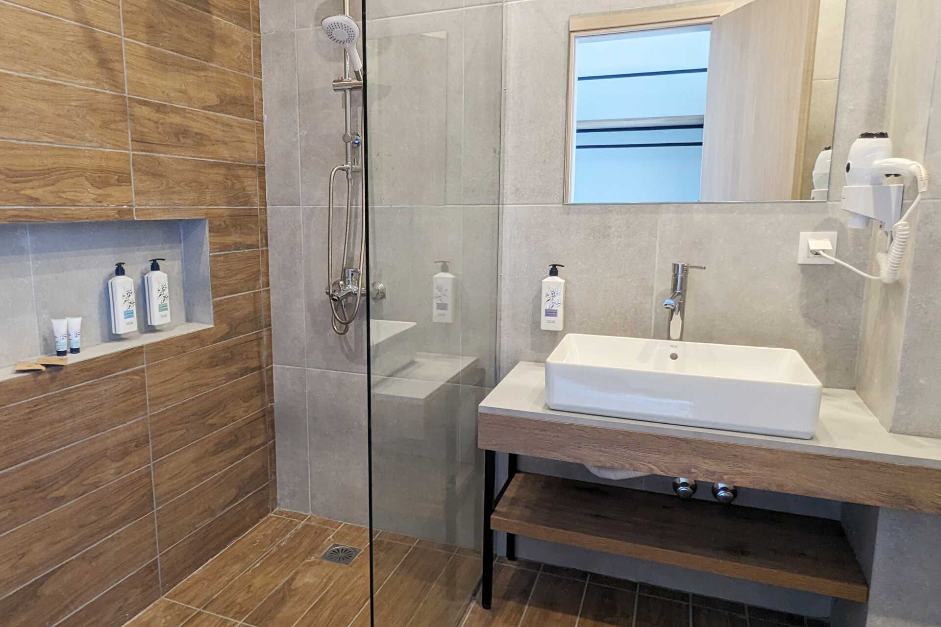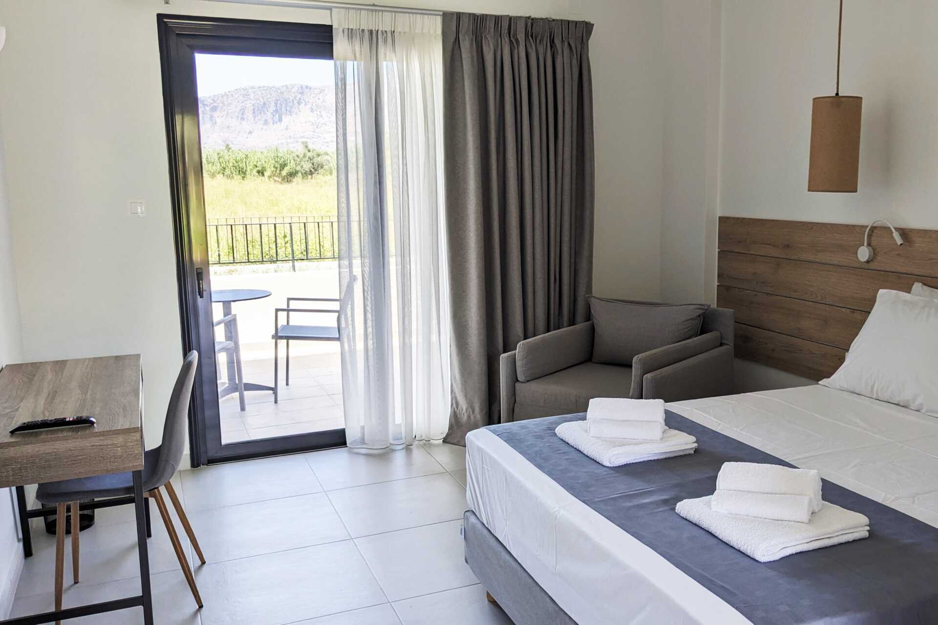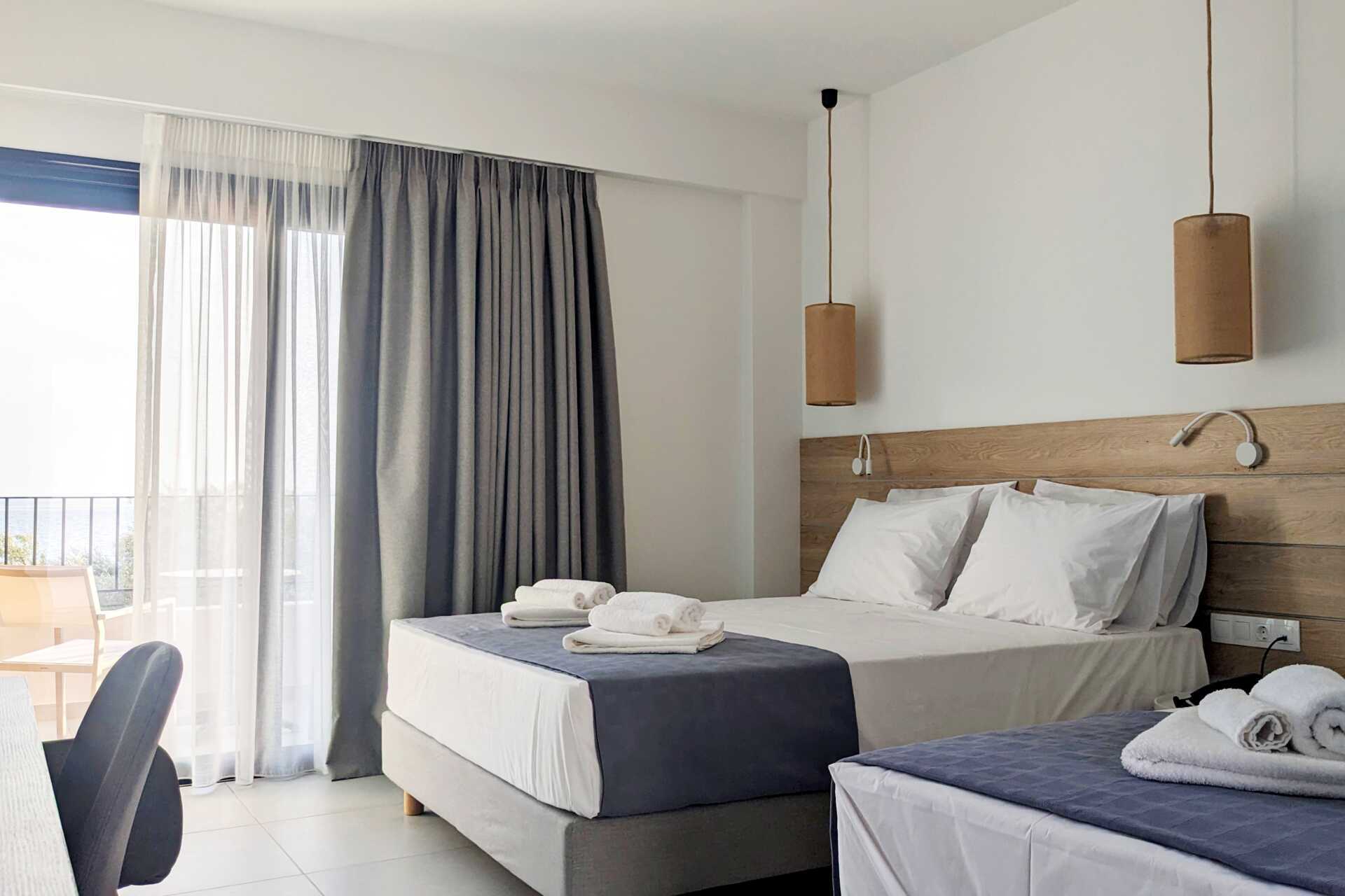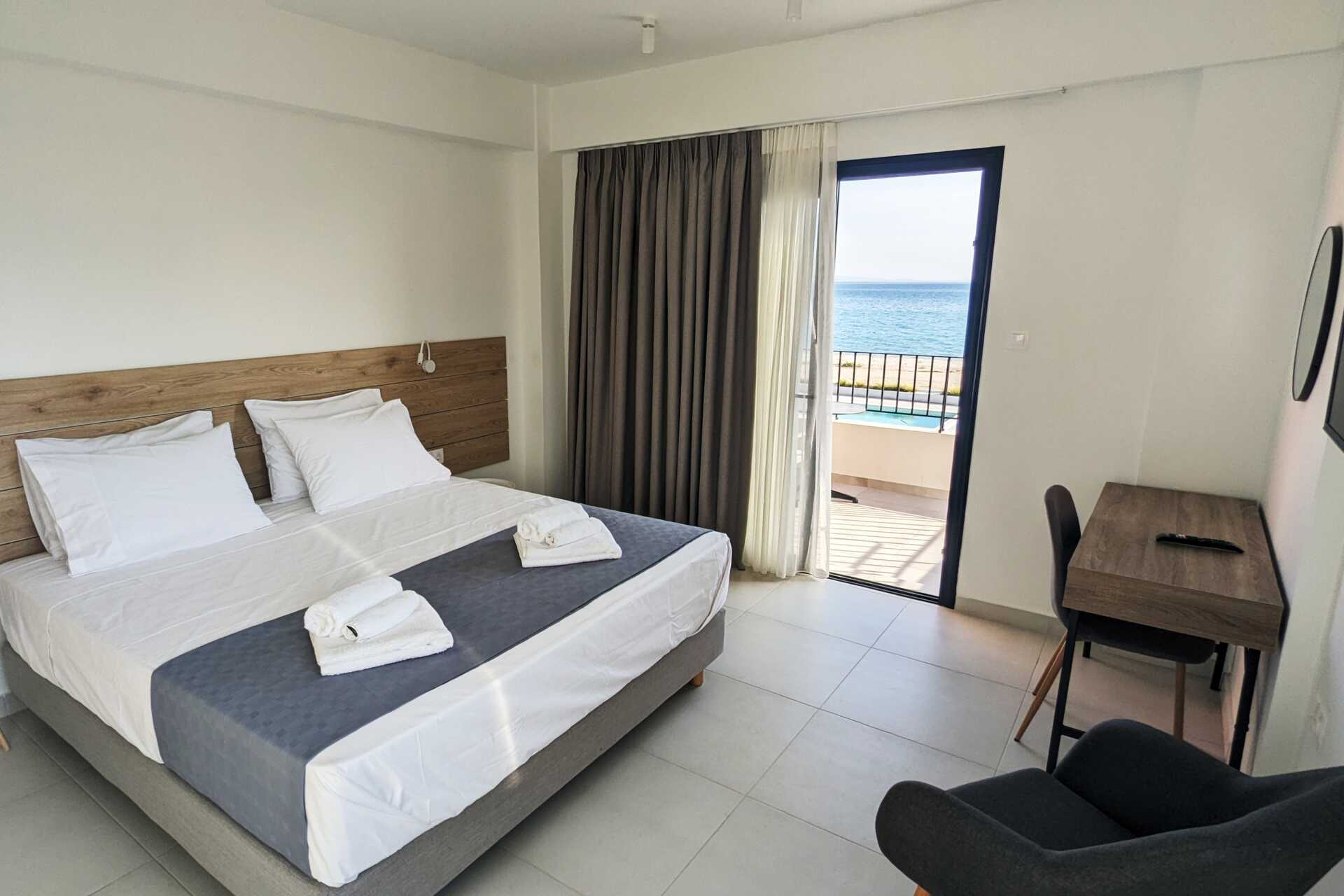 Superiorrom med balkong og havutsikt. En dobbeltseng. Mulig med ekstraseng i oppredbar lenestol. Wifi og luftkondisjonering er inkludert. Kjøleskap. Vannkoker samt kaffe og te. TV. Tøfler. Hårføner. Dusj og wc. Rengjøring 6 ggr/uke. Barn under 2 år regnes inn i maksantallet i rommet.