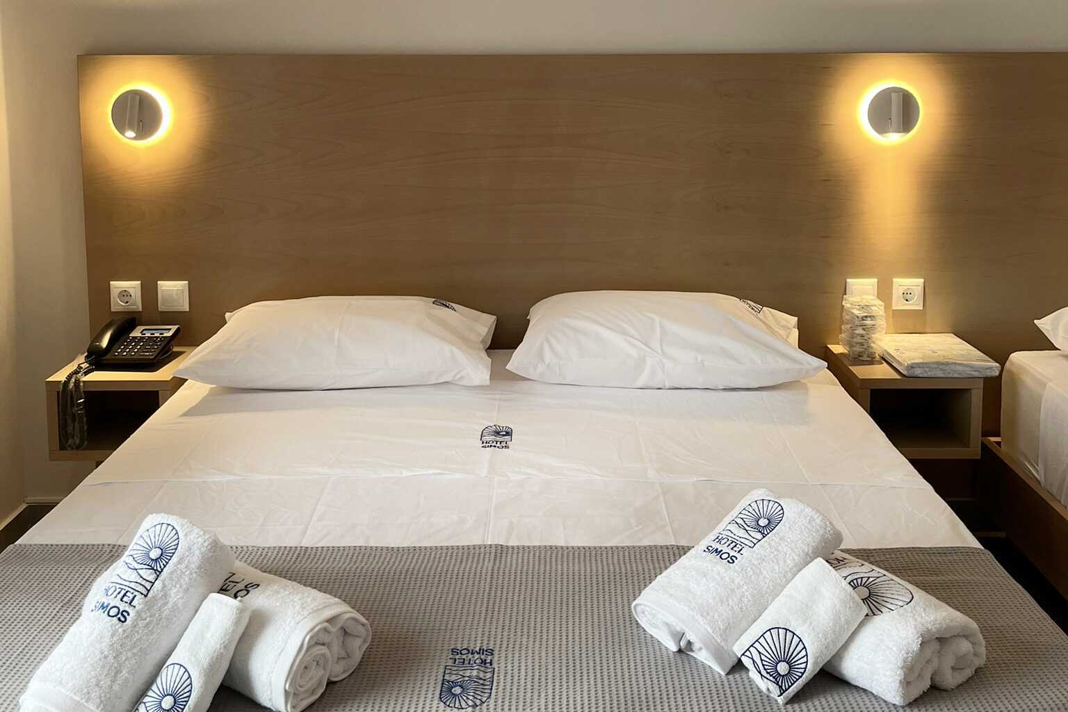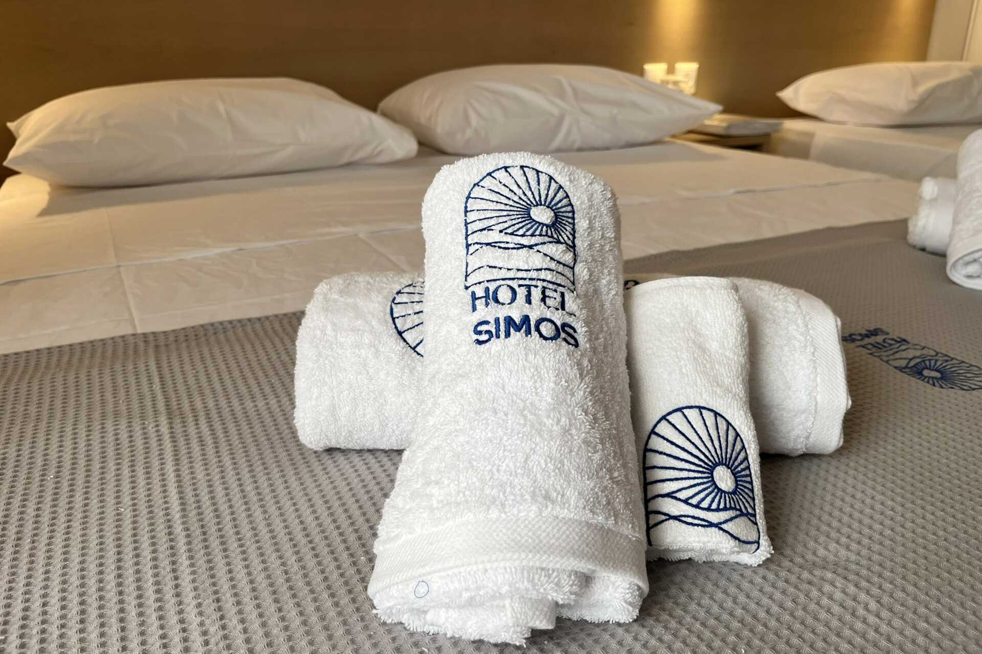 Simos ligger i hjertet av den pittoreske lille fiskerlandsbyen Mytikas. Her kan du nyte en rolig og avslappende ferie langt fra turisttråkket. Gangavstand til nærmeste strand og til den lille havnen. Underveis er det noen restauranter og små lokale butikker å besøke. Hotellet er et perfekt utgangspunkt hvis du leier bil og vil se deg rundt. Hotellets restaurant tilbyr kun frokostbuffé. Resepsjonen er åpen fra tidlig morgen til sen kveld.