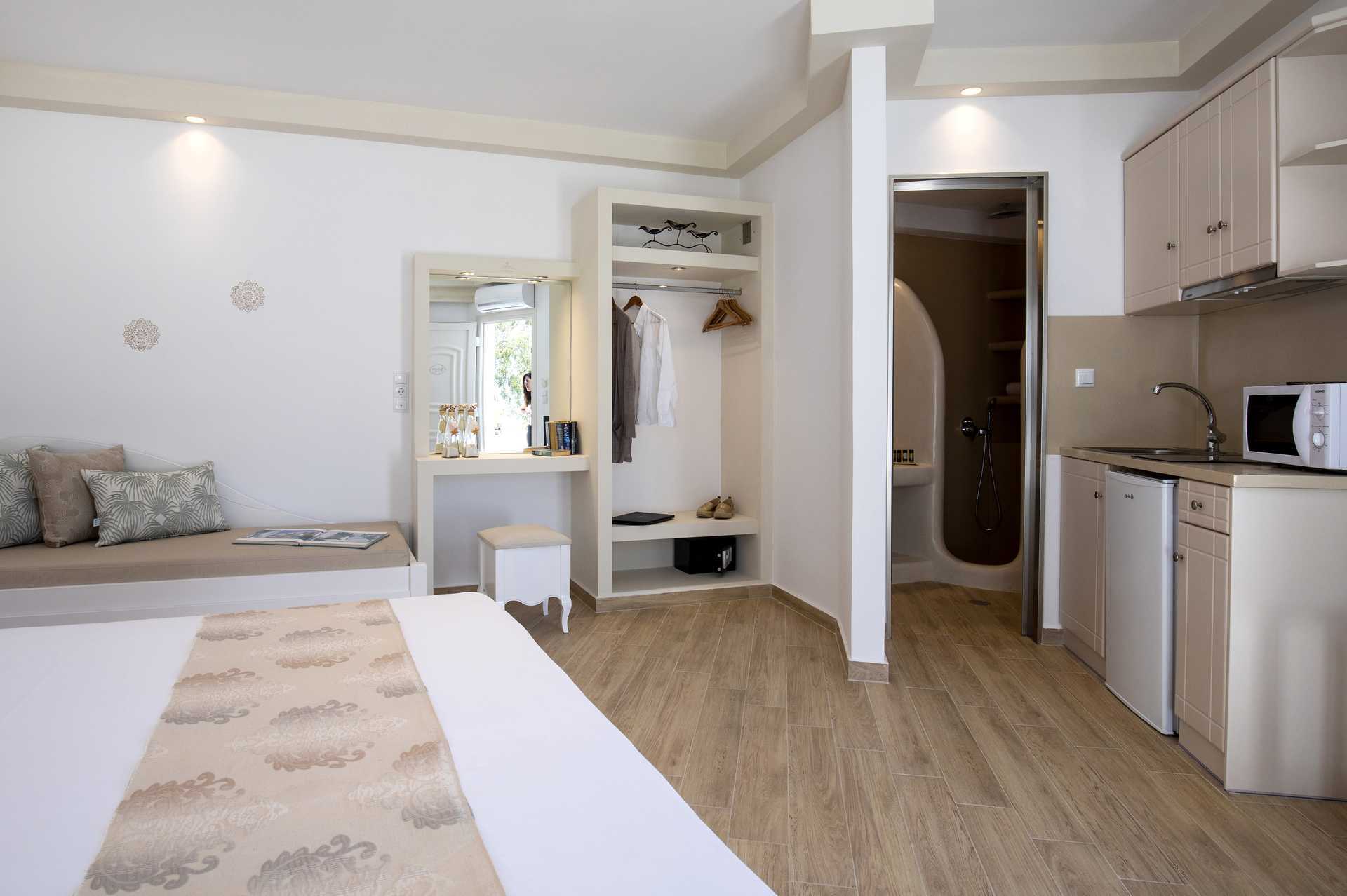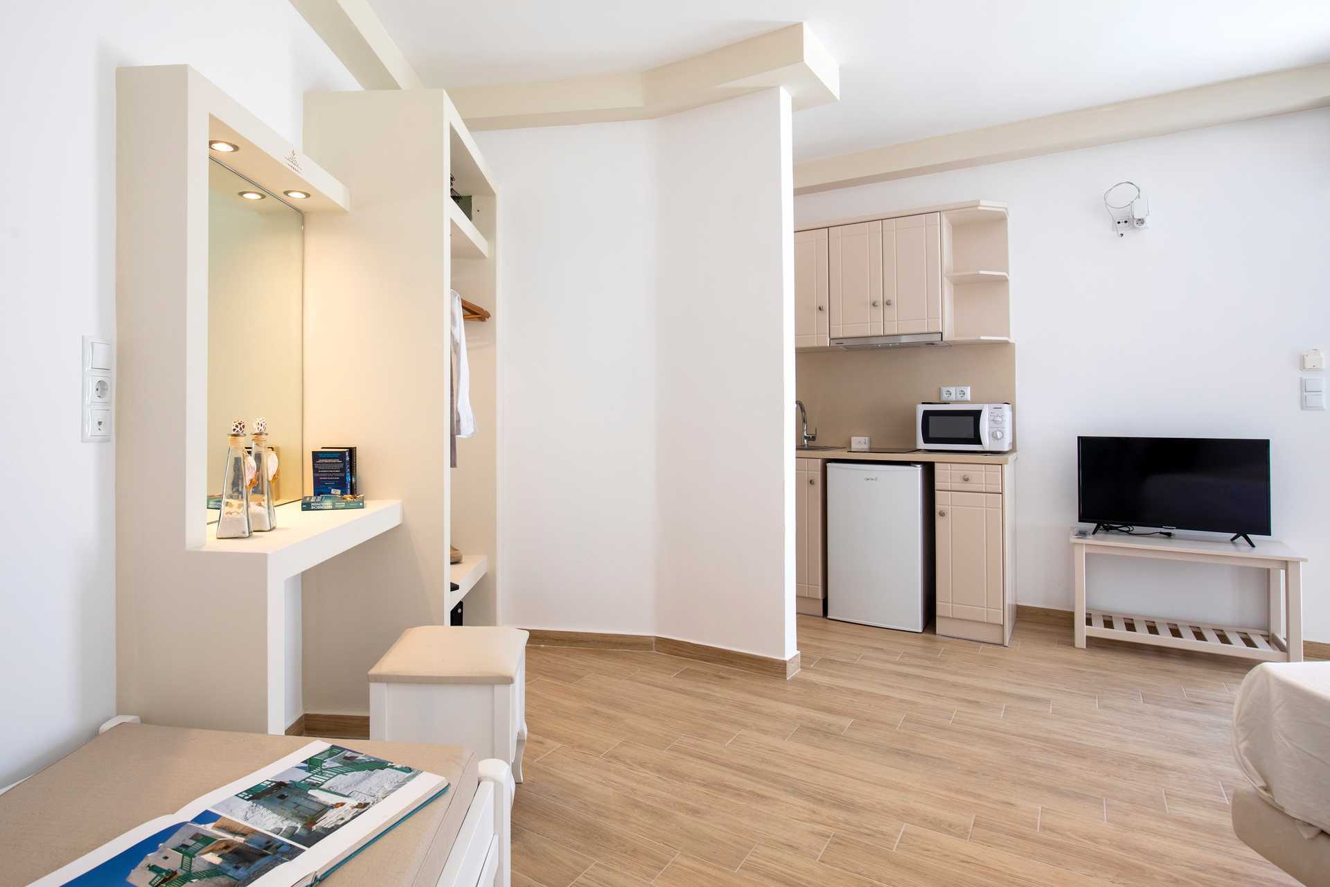 Ettromsleilighet med balkong eller markbalkong. Soverom kombinert med minikjøkken. En dobbeltseng. Mulig med en ekstraseng i sovesofa. Minikjøkken med kjøleskap, kokeplater, mikrobølgeovn og enkelt kjøkkenutstyr. Wifi, luftkondisjonering og safe inkludert. TV. Hårføner. Dusj og wc. Rengjøring 7 ggr/uke.