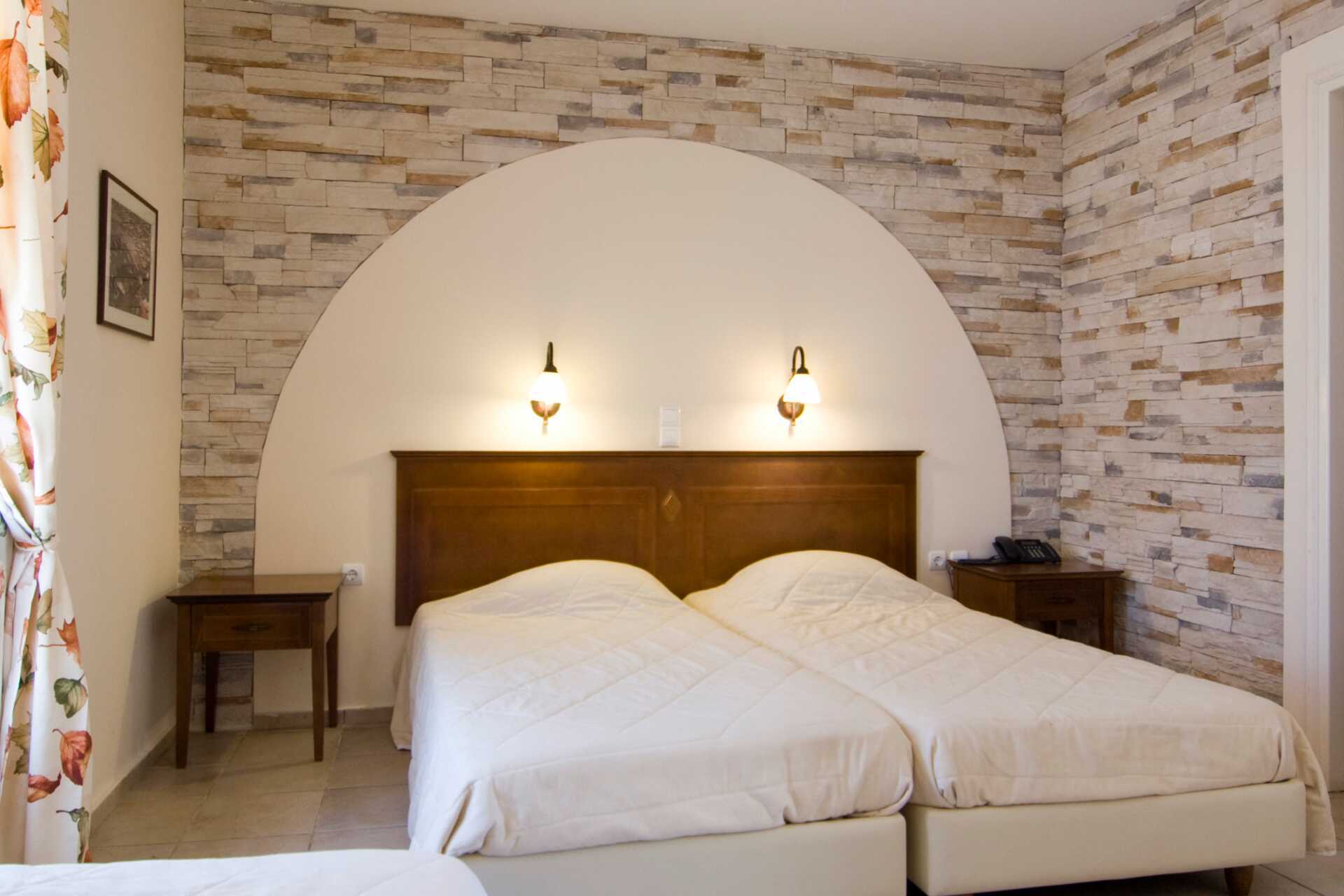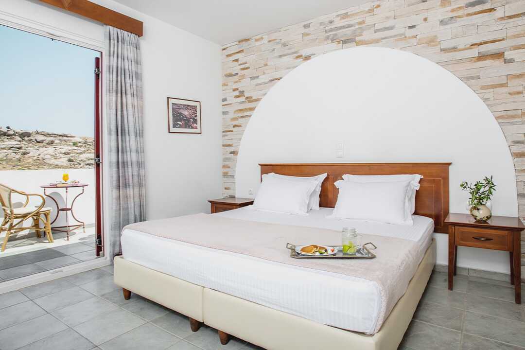 Dobbeltrom med balkong eller terrasse. En dobbeltseng eller to enkeltsenger. Mulig med ekstraseng i enkeltseng. Wifi, luftkondisjonering og safe. Kjøleskap. TV med internasjonale kanaler. Hårføner. Baderom med dusj og wc. Rengjøring 7 ggr/uke.