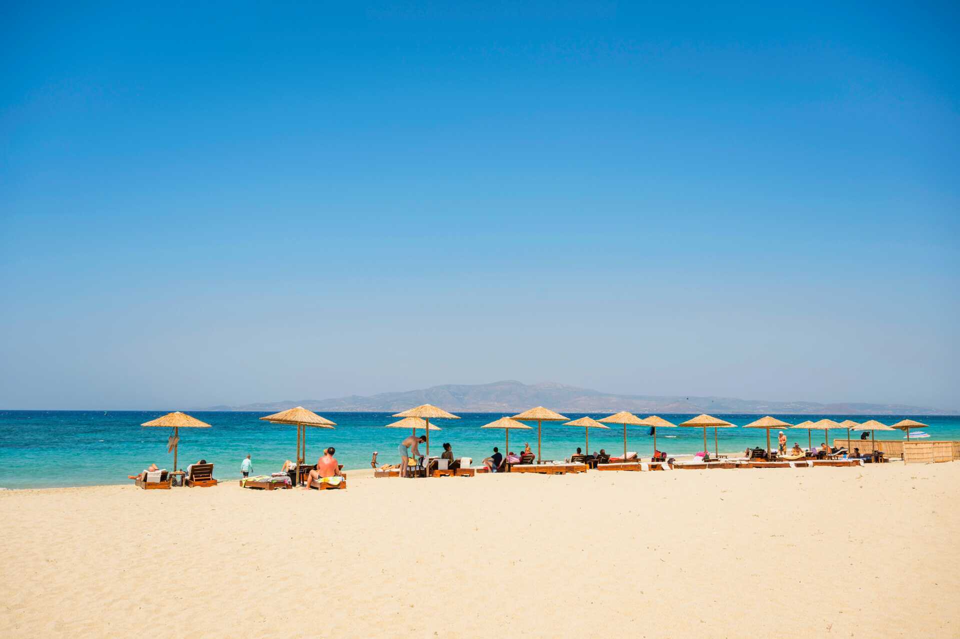 Alle strendene på Naxos er fine sandstrender. De mest populære strendene ligger på vestkysten sør for Naxos by, og starter ved den lange grunne og finkornede stranden St George og strekker seg mot stranden i Agios Prokopios, Plaka Beach og Margas Beach.
