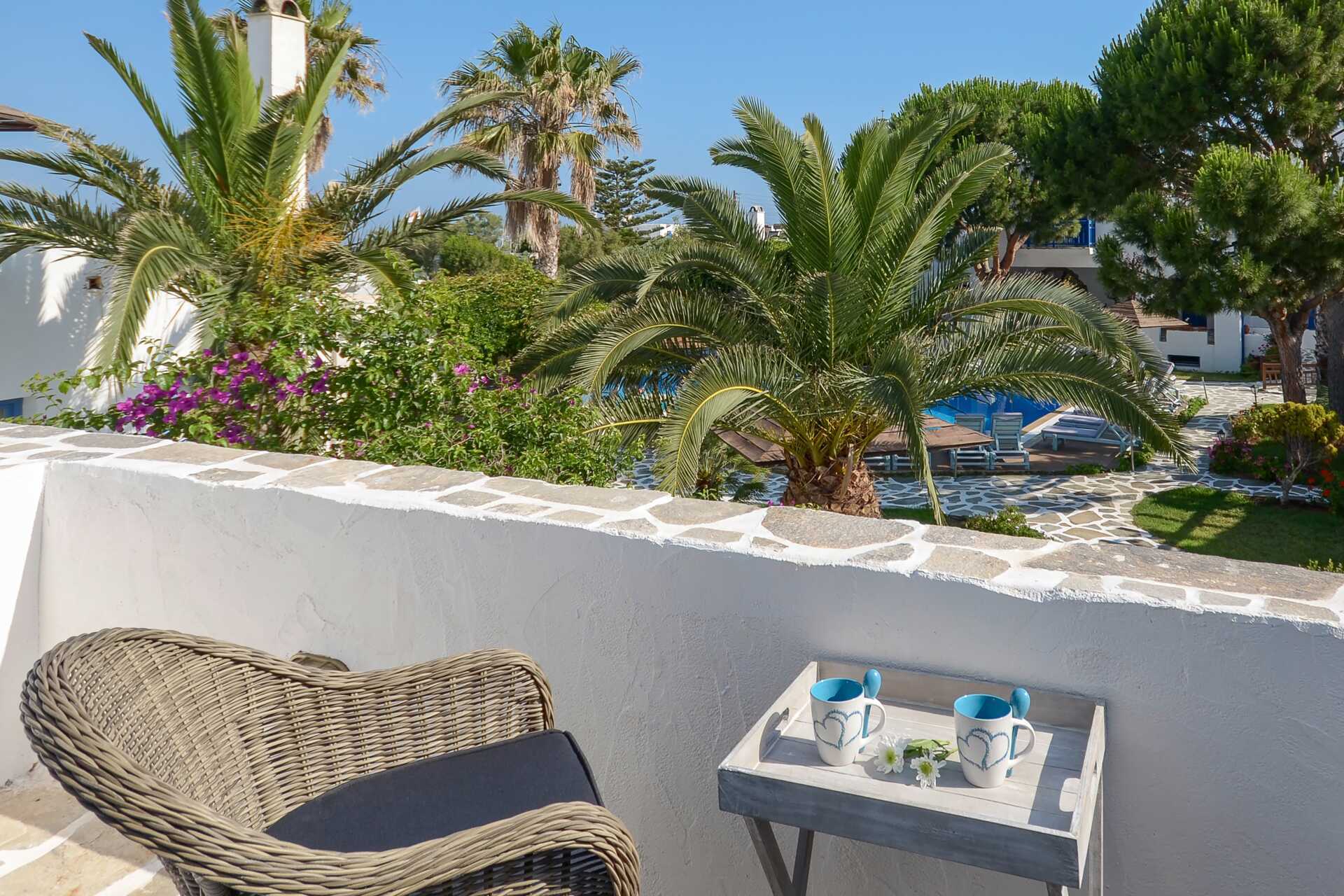 Standardrom med balkong eller terrasse. To enkeltsenger. Mulig med ekstraseng i feltseng. Kjøleskap. Vannkoker. Wifi og luftkondisjonering inkludert. TV. Hårføner. Badekar eller dusj samt wc. Rengjøring 7 ggr/uke.