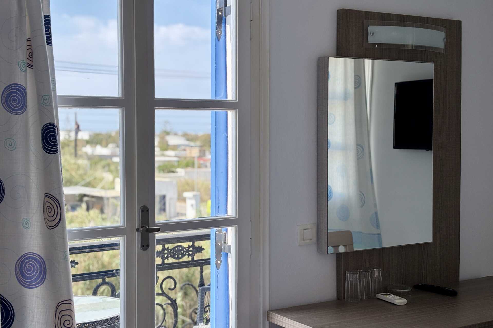 Trippelrom med balkong eller terrasse. En dobbeltseng og en enkeltseng. Wifi og luftkondisjonering er inkludert. Safe mot avgift. Kjøleskap. TV. Hårføner. Baderom med dusj og wc. Rengjøring 7 ggr/uke.