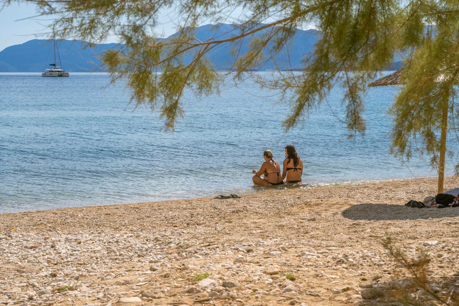 Mange strender og badeviker langs hele kysten. Potamakistranden ligger et par kilometer unna, og det er en mindre strand midt i Paleros.