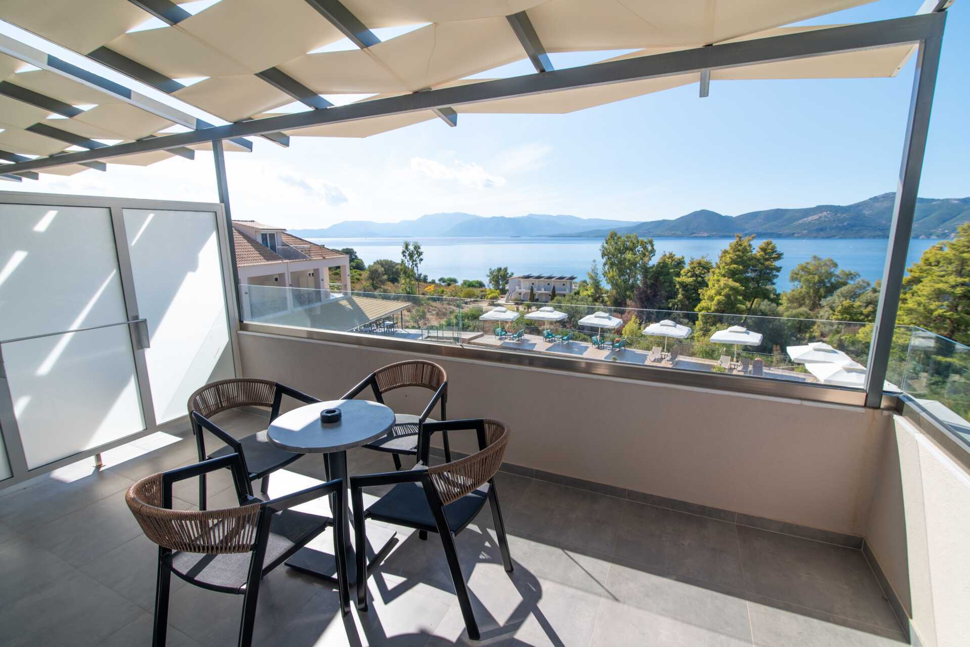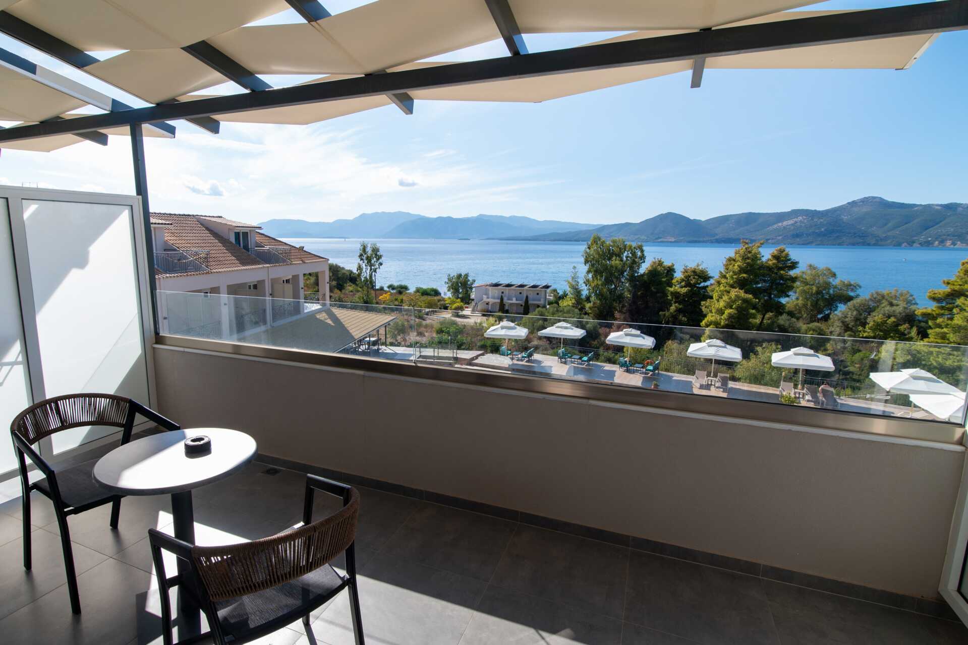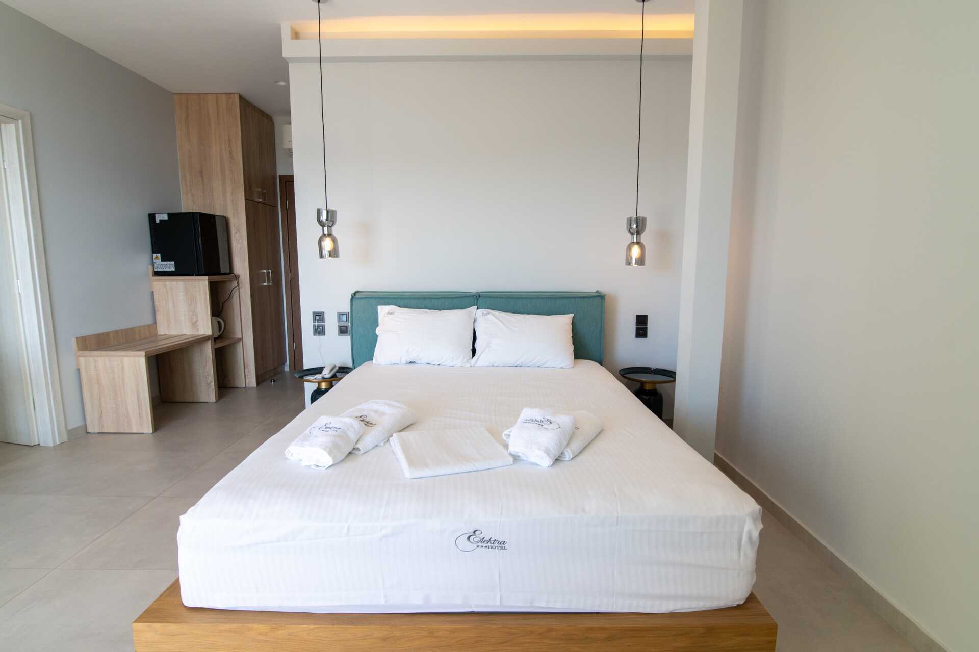 Superiorrom med balkong og havutsikt. En dobbeltseng. Wifi, luftkondisjonering og safe inkludert. Kjøleskap. TV. Hårføner. Dusj og wc. Rengjøring 6 ggr/uke. Barn under 2 år regnes inn i maksantallet i rommet.
