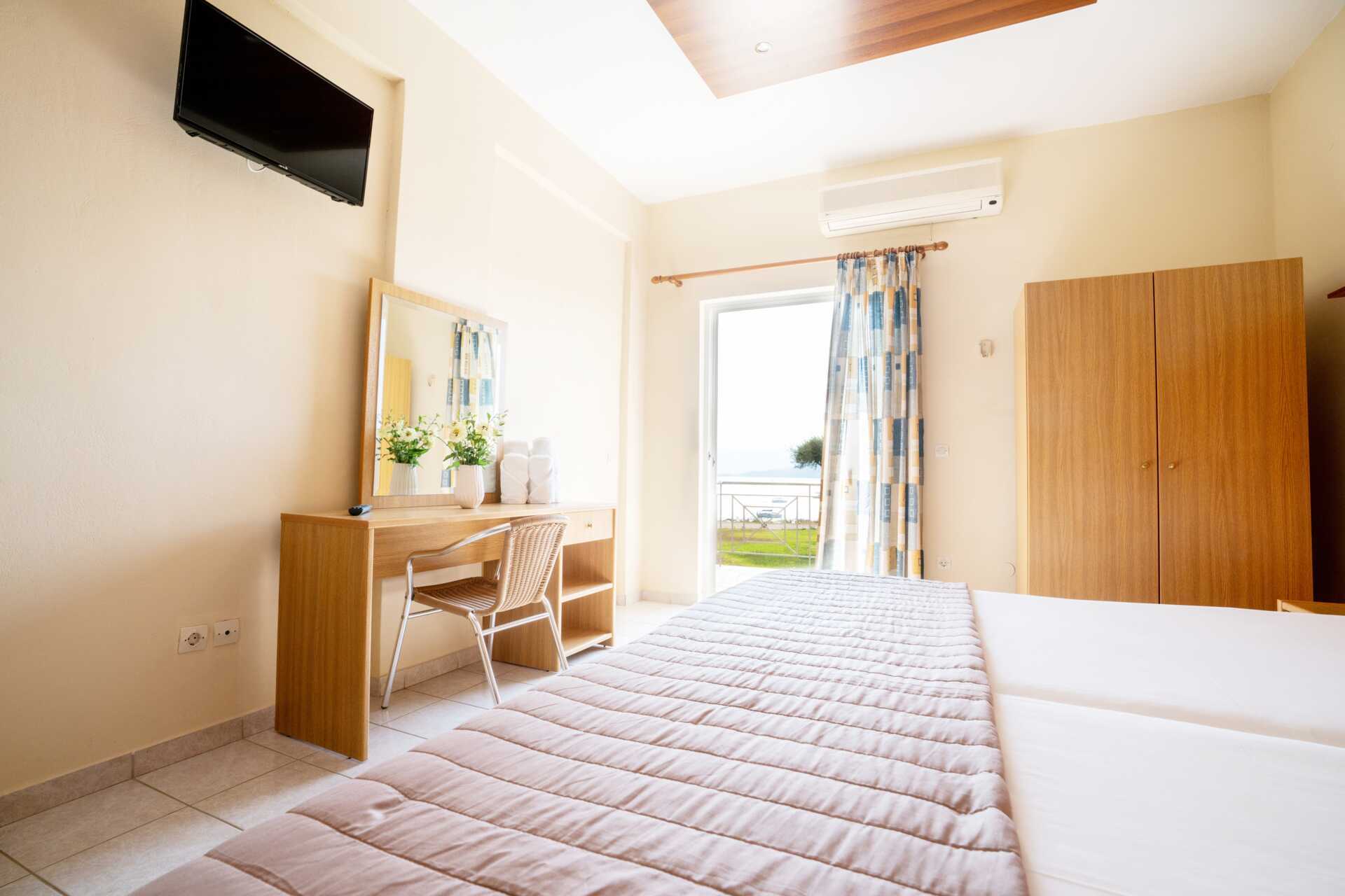 Dobbeltrom med balkong, noen med havutsikt. En dobbeltseng eller to enkeltsenger. Mulig med ekstraseng i enkeltseng. Wifi, luftkondisjonering og safe inkludert. Kjøleskap. Vannkoker. TV. Badekar eller dusj samt wc. Barn under 2 år regnes inn i maksantallet i rommet.