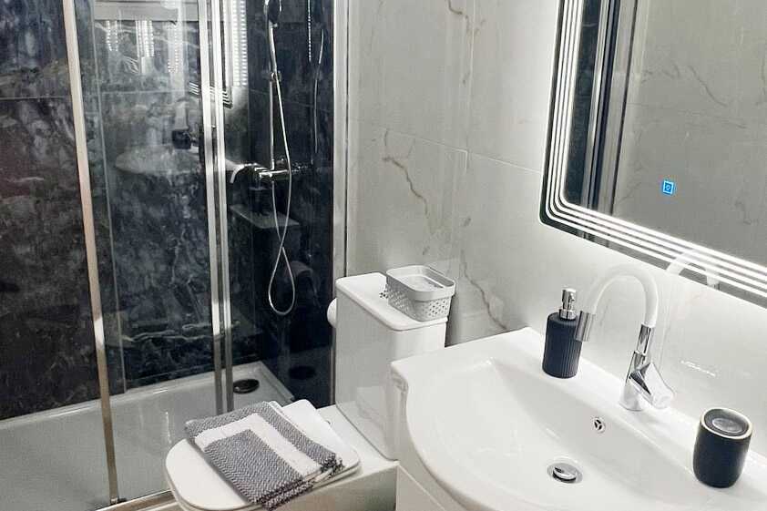 Treromsleilighet med balkong. To soverom og en stue med minikjøkken. Et soverom med dobbeltseng og et soverom med to enkeltsenger. Minikjøkken med kokeplater, stekeovn, kjøleskap og enkelt kjøkkenutstyr. Wifi, luftkondisjonering og safe inkludert. Vaskemaskin. Baderom med dusj og wc. Rengjøring 5 ggr/uke.