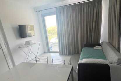 Toromsleilighet med balkong. Et soverom og kombinert stue med minikjøkken. En dobbeltseng eller to enkeltsenger. Mulig med en ekstraseng i sovesofa. Minikjøkken med kokeplater, stekeovn, kjøleskap og enkelt kjøkkenutstyr. Wifi, luftkondisjonering og safe inkludert. Vaskemaskin. Baderom med dusj og wc. Rengjøring 5 ggr/uke.