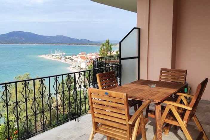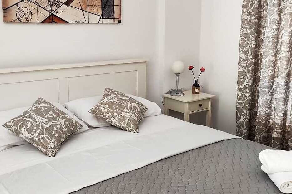 Ettromsleilighet med balkong med havutsikt eller markbalkong med havutsikt. Soverom kombinert med minikjøkken. En dobbeltseng. Minikjøkken med kokeplater, kjøleskap, mikrobølgeovn, vannkoker og enkelt kjøkkenutstyr. Wifi og luftkondisjonering inkludert. TV. Hårføner. Baderom med dusj og wc. Rengjøring 3 ggr/uke.