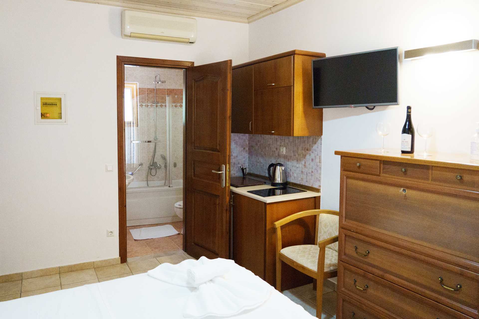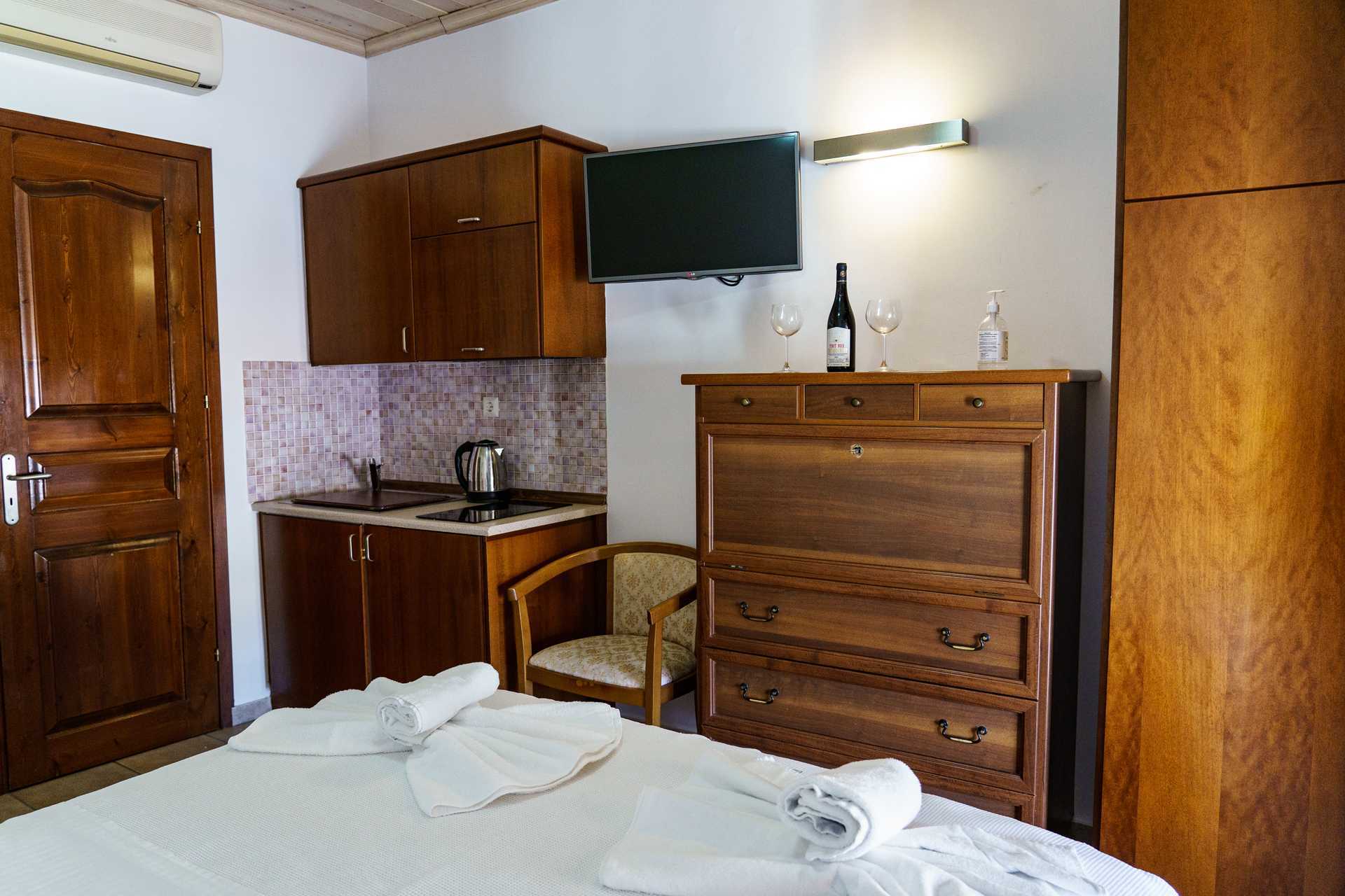 Ettromsleilighet med balkong. Soverom kombinert med minikjøkken. En dobbeltseng eller to enkeltsenger. Minikjøkken med kokeplater, kjøleskap, brødrister og enkelt kjøkkenutstyr. Spisebord på balkongen. Wifi og safe. Luftkondisjonering mot avgift. TV. Hårføner. Badekar eller dusj samt wc. Rengjøring 6 ggr/uke.